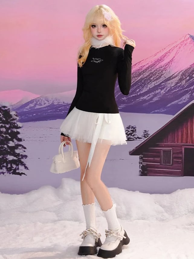 Schwarz-weißes Old School Lolita Fashion Kleid Bowknot Lolita JSK Set