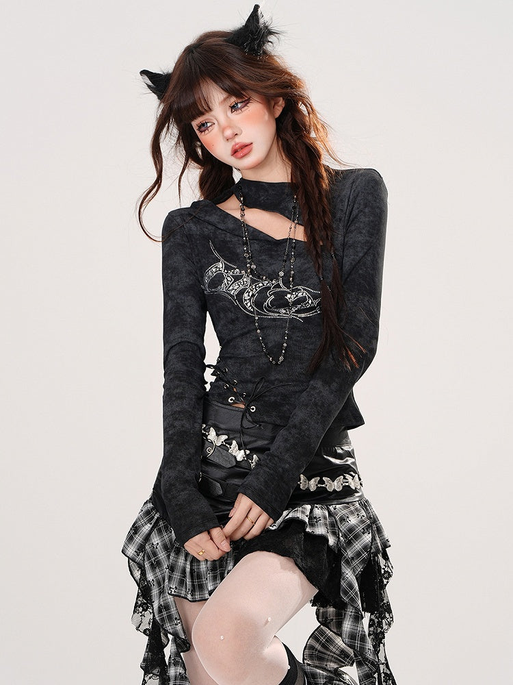 Umarmen Sie Eleganz und Ausgefallenheit mit unserem schwarz/khakifarbenen, mit Strasssteinen verzierten Cutout-Top mit schillernden Strasssteindetails und trendigem Schnürdesign. Perfekt, um jedem Outfit Flair zu verleihen.