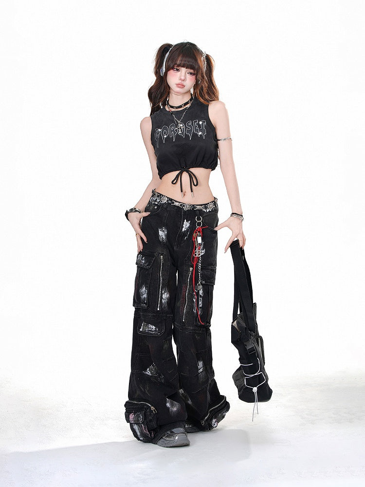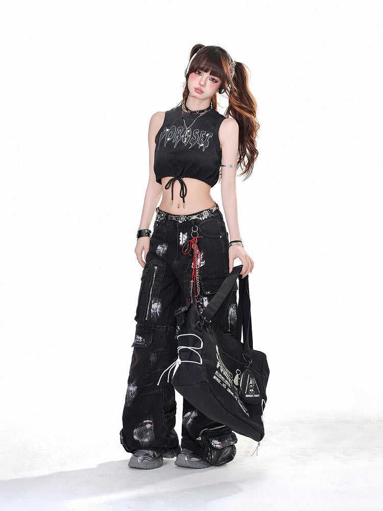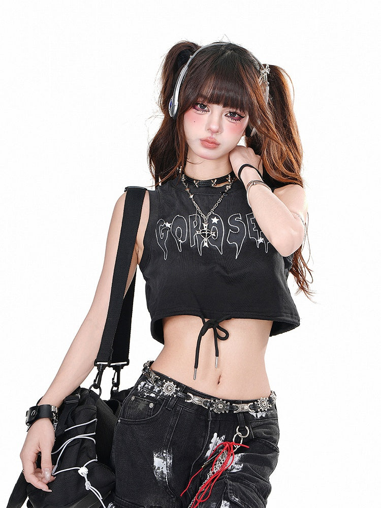 Schwarzes, glamouröses kurzes Tanktop mit Buchstaben