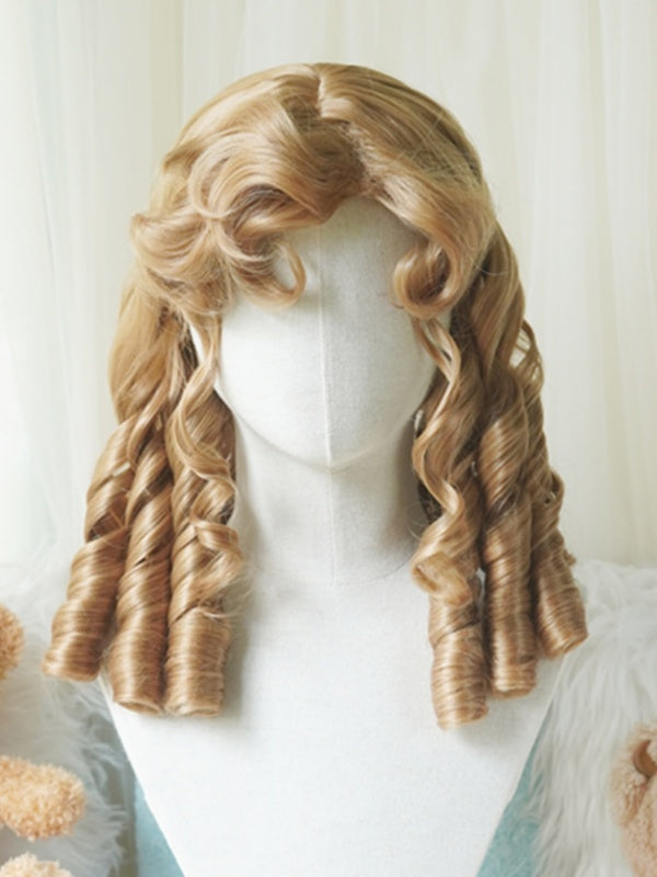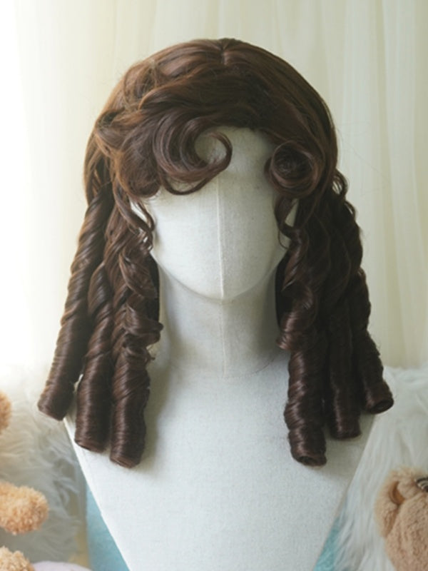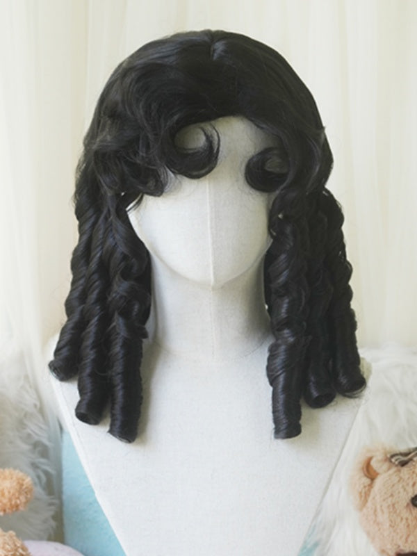 Schwarz/Hellblond/Rosa/Dunkelbraun/Blonde Perücke über der Brust mit römischem lockigem Pony