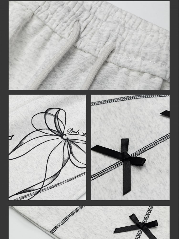 Diese schwarz/hellgraue Jogginghose mit Schleife und geradem Bein verleiht Ihrer Freizeitgarderobe einen Hauch von Niedlichkeit. Das Schleifendesign verleiht einen verspielten Charme, während der gerade Schnitt für eine bequeme, stylische Passform sorgt. Bleiben Sie gemütlich und stylisch in dieser bezaubernden Jogginghose.