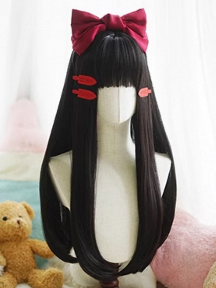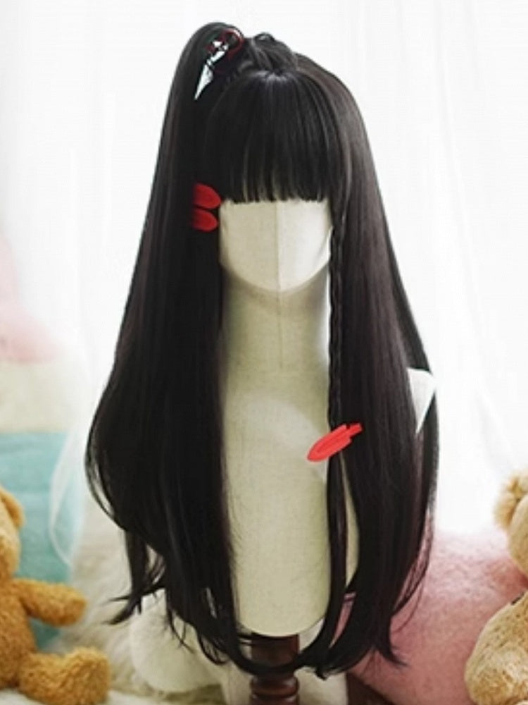 Verwandeln Sie Ihren Look mit unserer langen, glatten schwarzen Perücke! Mit ihrem vollen Pony ist diese Perücke das perfekte Accessoire für eine Vielzahl von Styles. Hergestellt aus hochwertigen Materialien, ist sie bequem und langlebig. Perfekt, um jedem Outfit einen Hauch von Niedlichkeit zu verleihen.