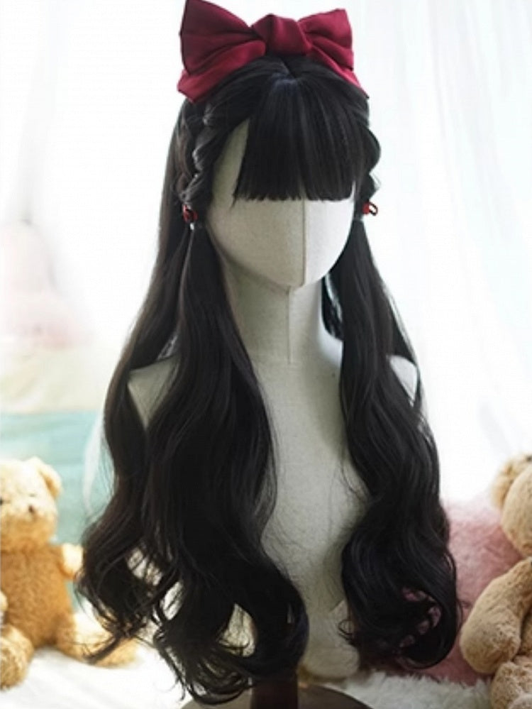 Verwandeln Sie Ihren Look mit unserer langen, gewellten schwarzen Perücke mit vollem Pony. Erzielen Sie einen süßen und verspielten Style mit langen, gewellten Locken und kräftigem Pony. Perfekt für Cosplay, Kostüme oder den Alltag. Hergestellt aus hochwertigen Kunstfasern für einen natürlichen, realistischen Look.
