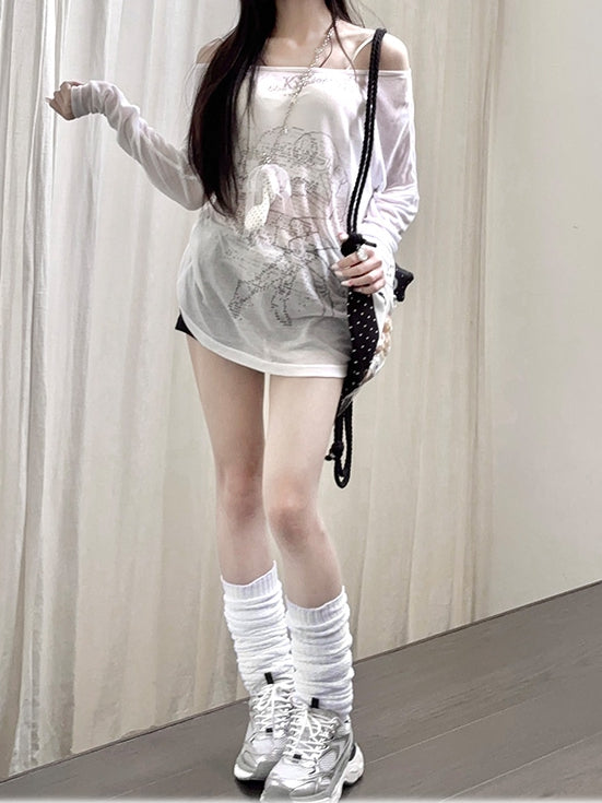 White/Black Bow Straps with Design Tights Floral Pattern