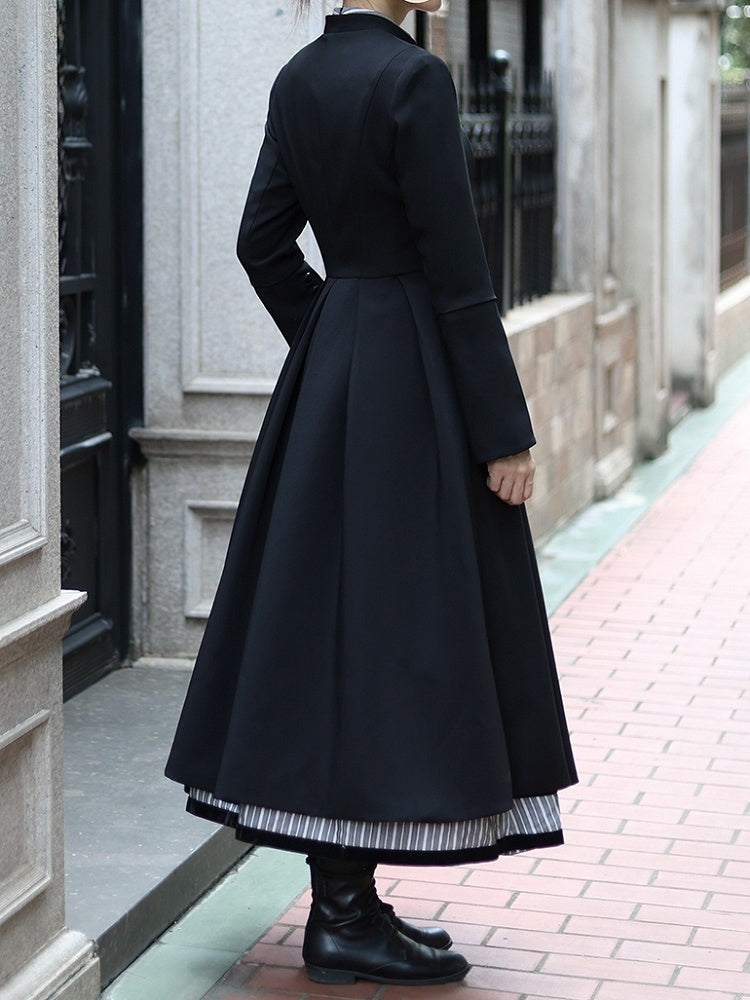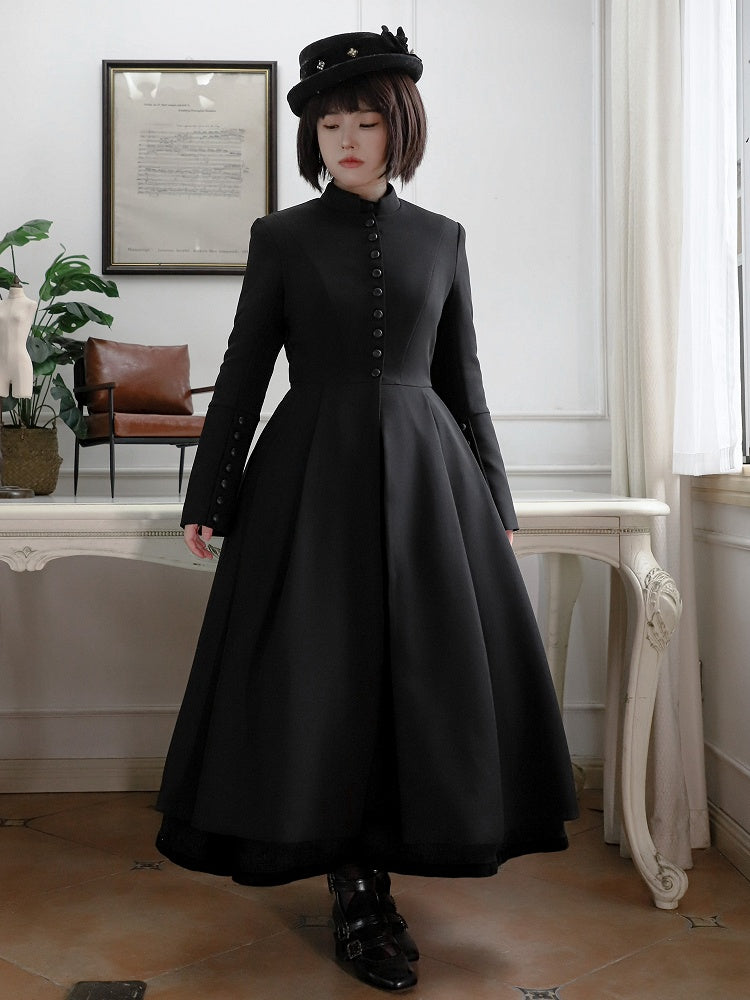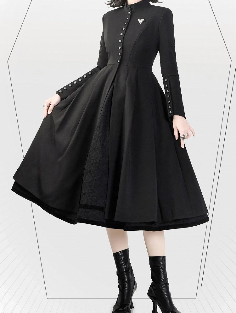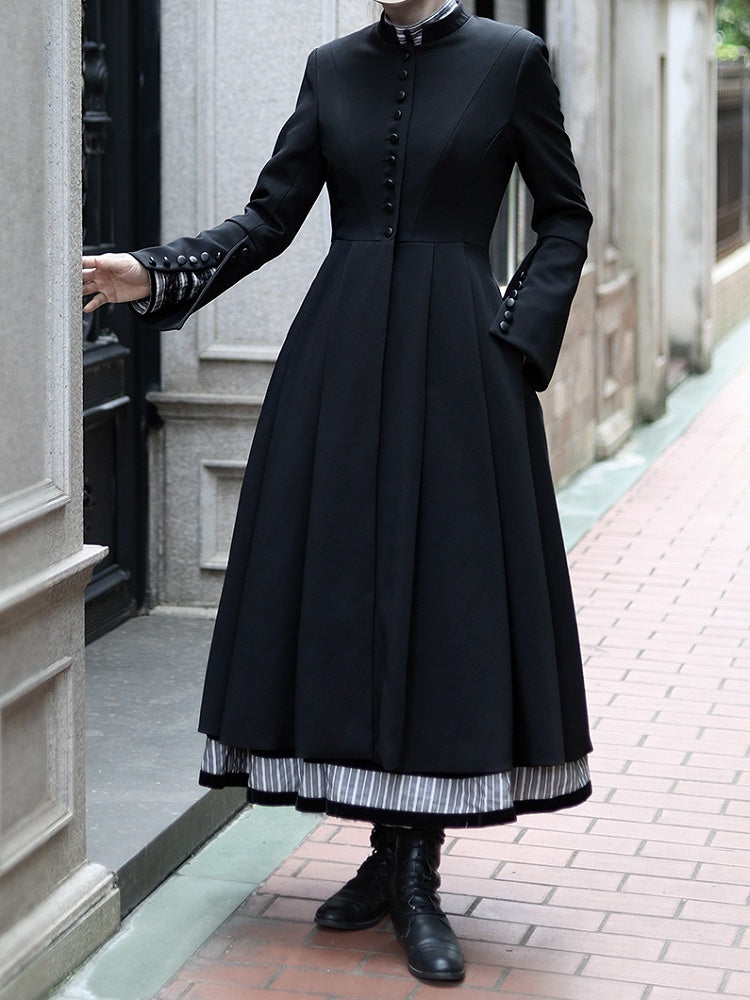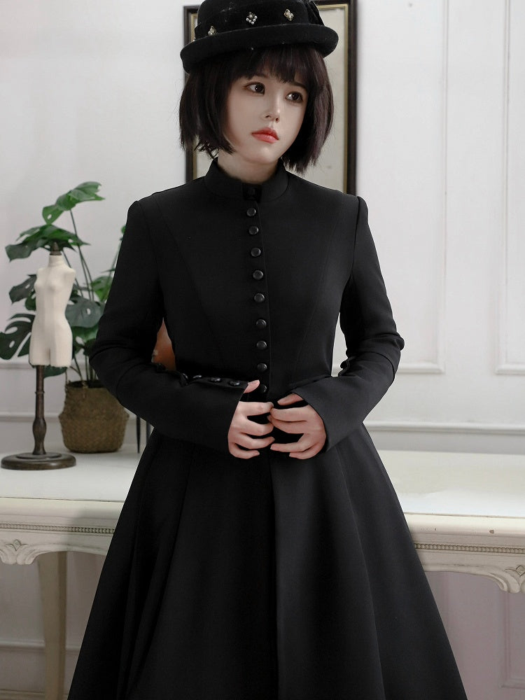 Schwarzer Mantel mit Stehkragen und langen Ärmeln