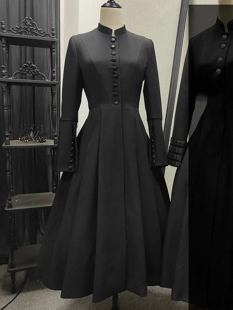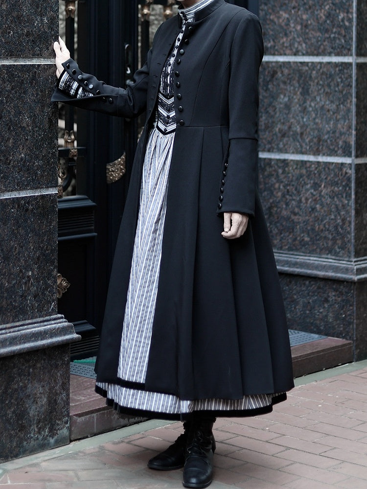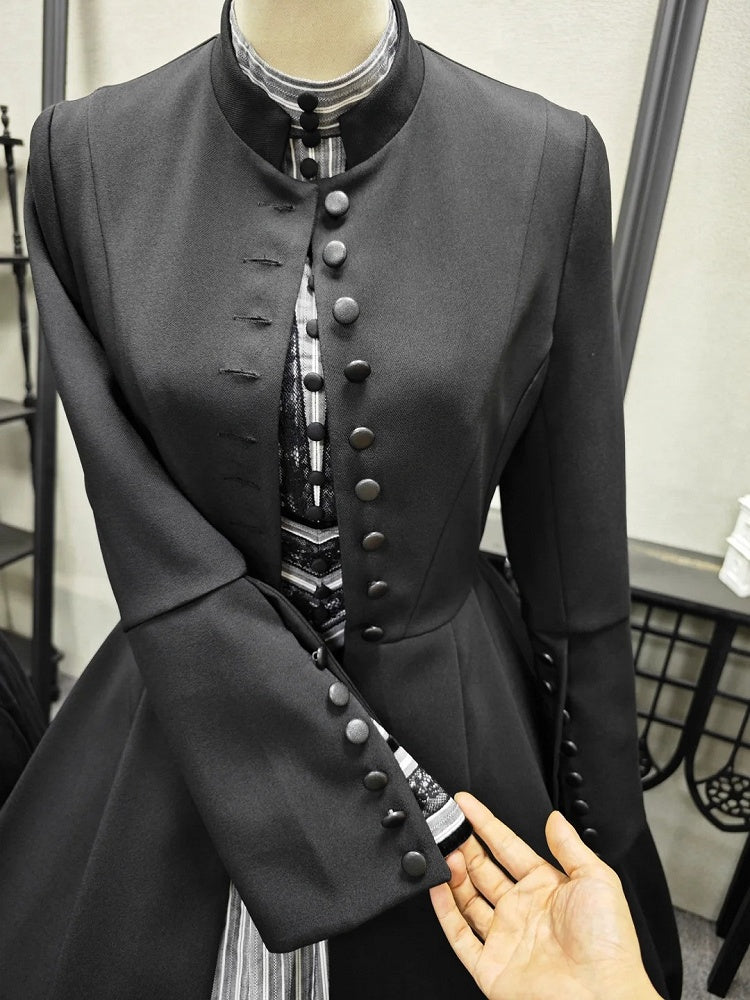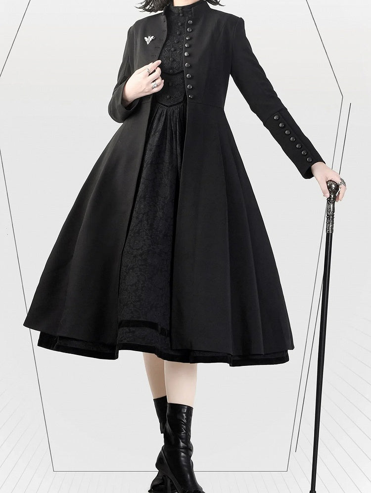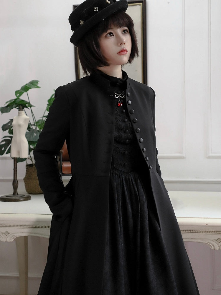 Schwarzer Mantel mit Stehkragen und langen Ärmeln