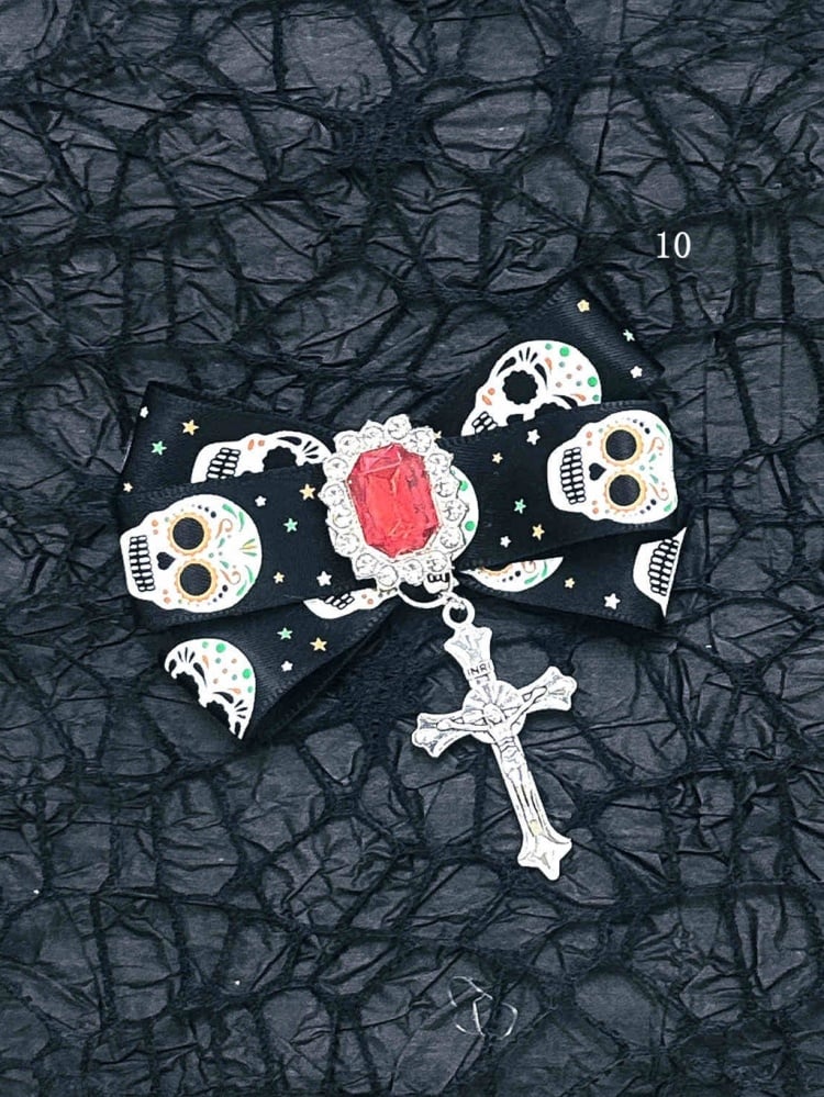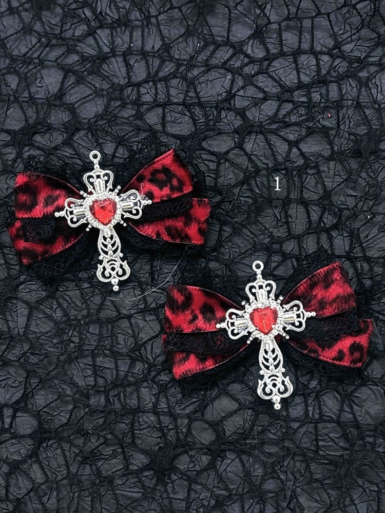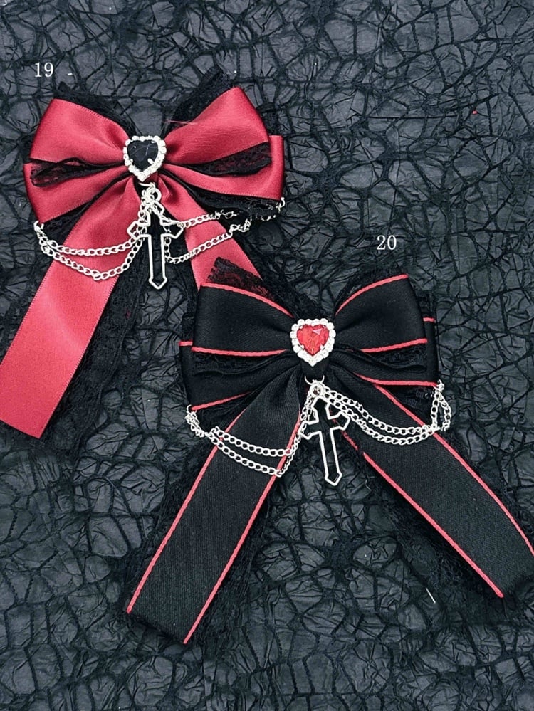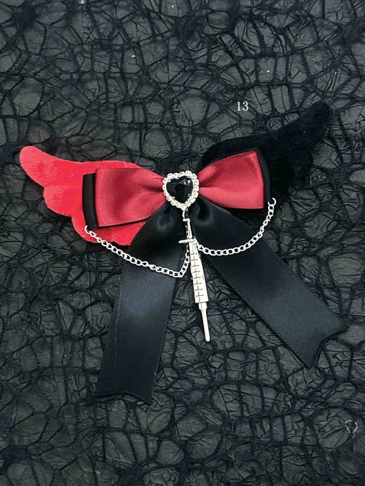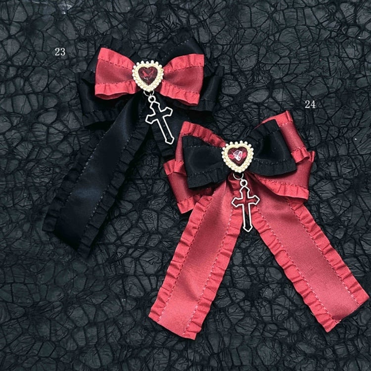 Schwarz-rote Halloween-Jirai-Kei-Haarspangen mit Schleife