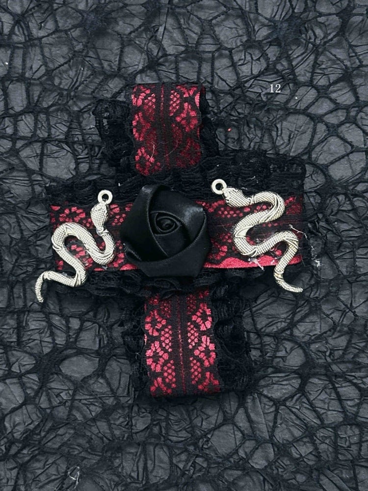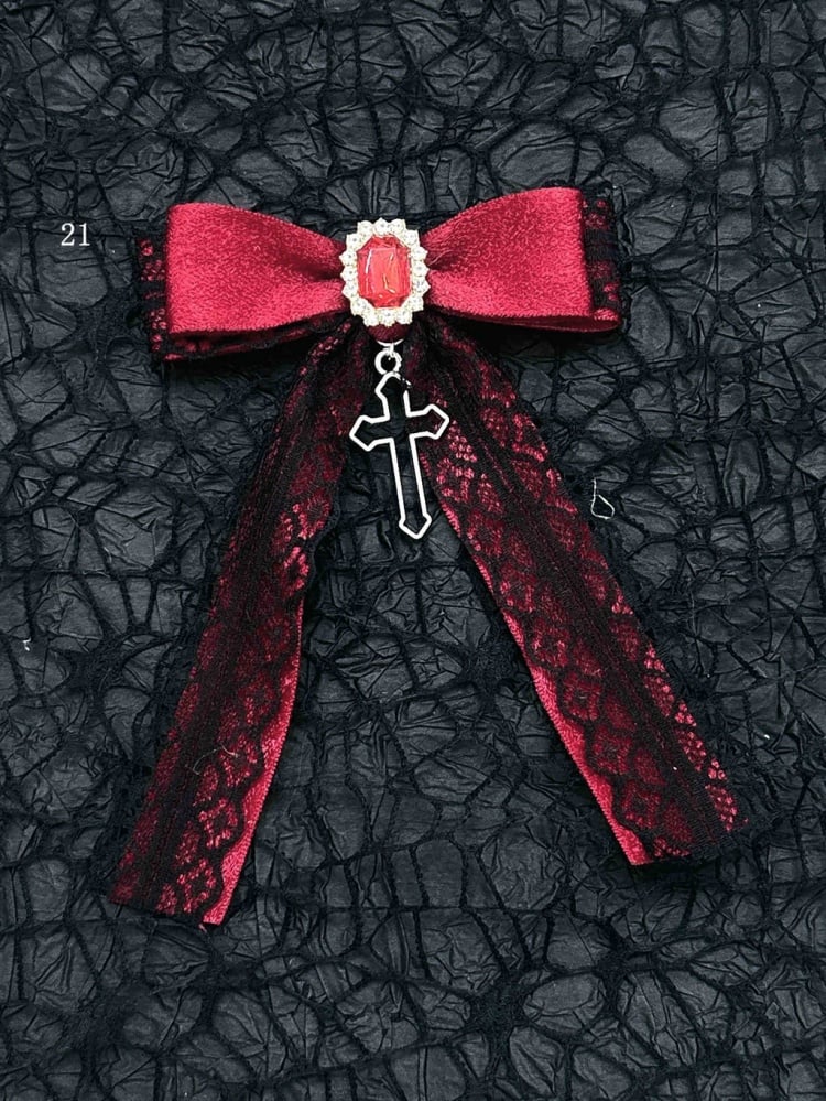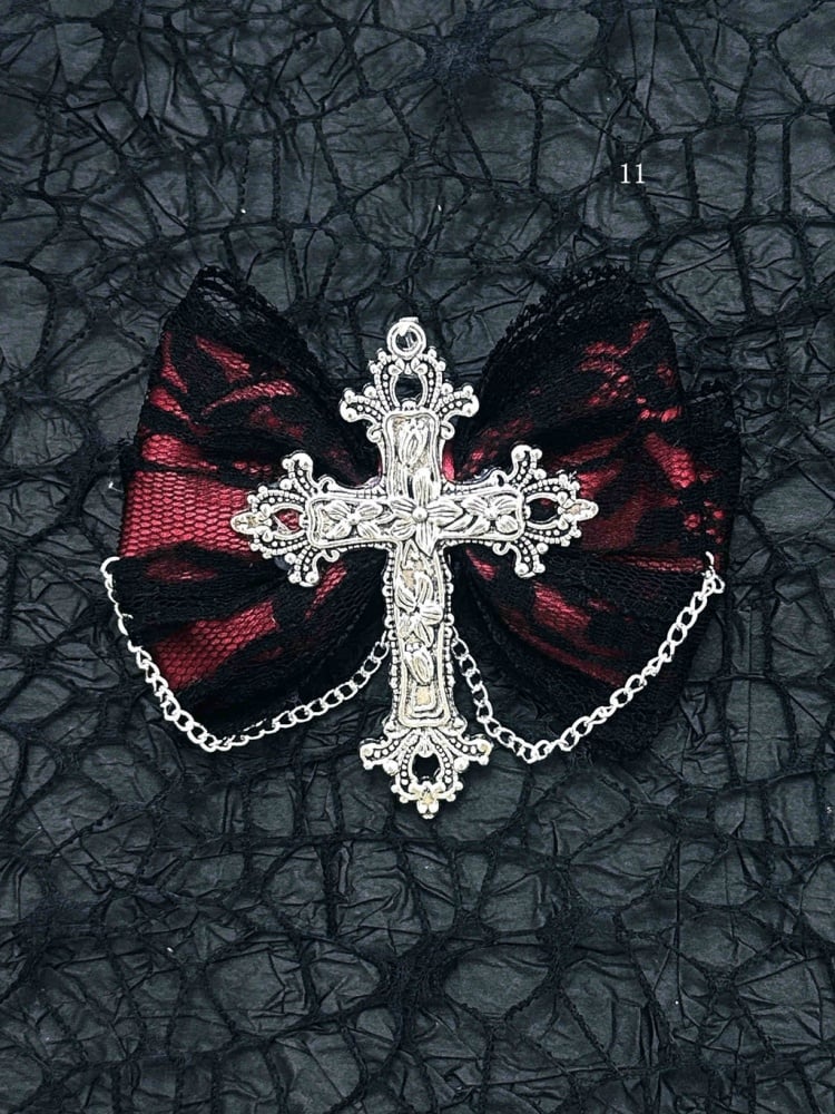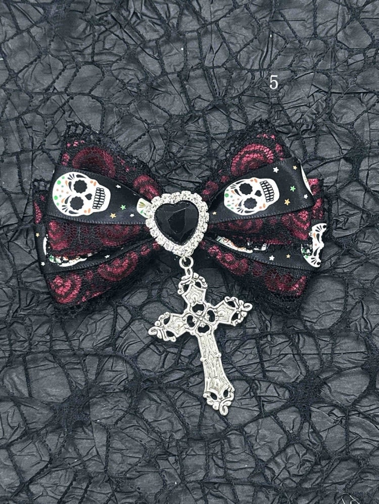 Schwarz-rote Halloween-Jirai-Kei-Haarspangen mit Schleife