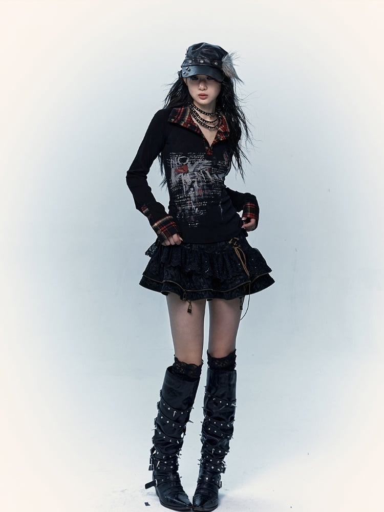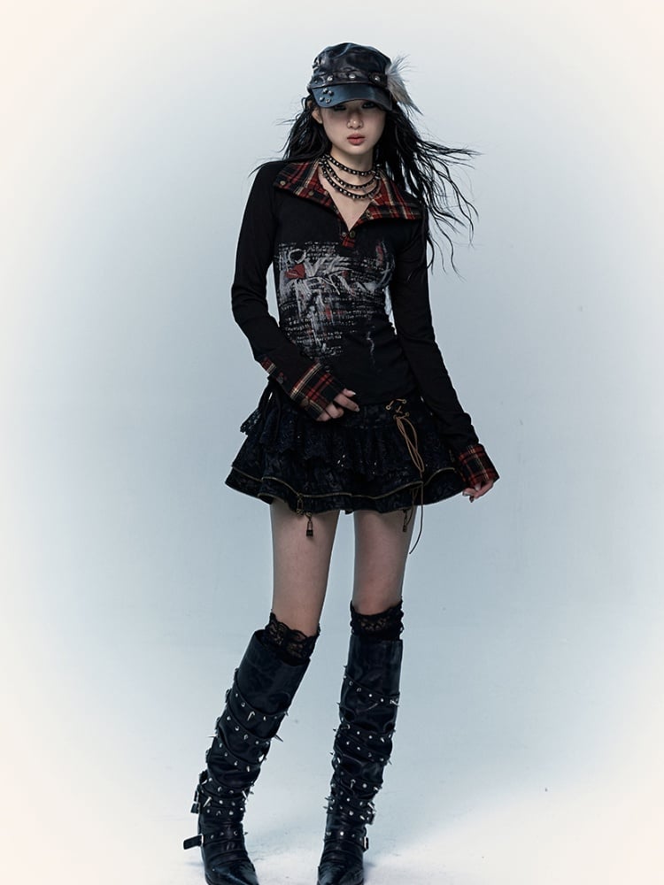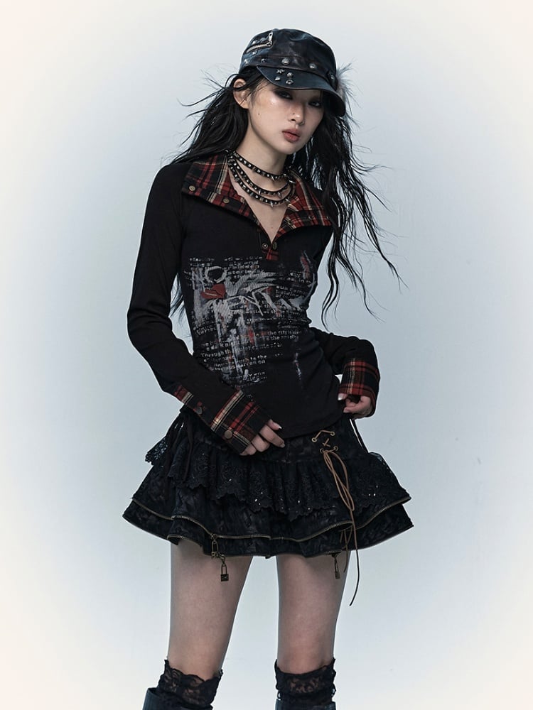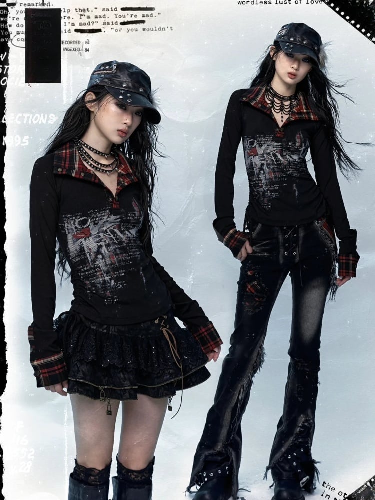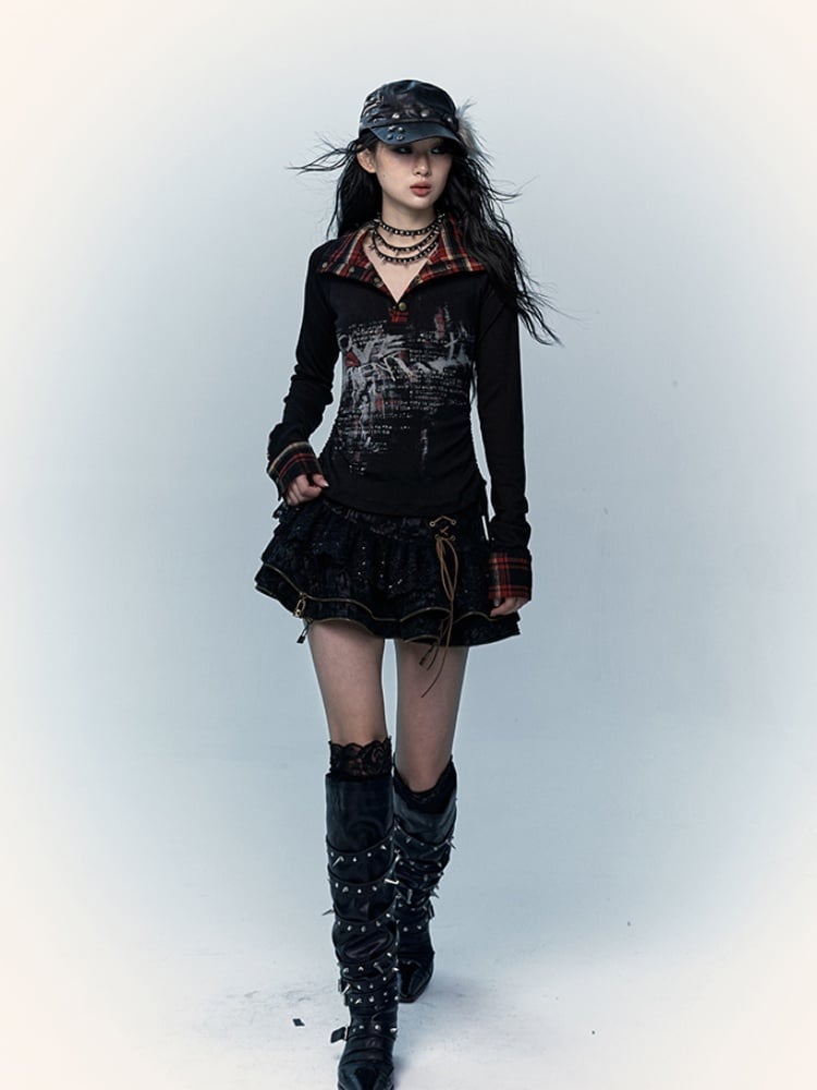 Dieses schwarz-rot karierte Polokragen-Top mit Kordelzug ist stylisch und bequem zugleich. Das einzigartige Design des Polokragens und des Kordelzugs in der Taille macht es zum Blickfang, während das Karomuster für einen Hauch von Süße sorgt. Perfekt für jeden Anlass – mit diesem Top sehen Sie einfach toll aus und fühlen sich auch so.