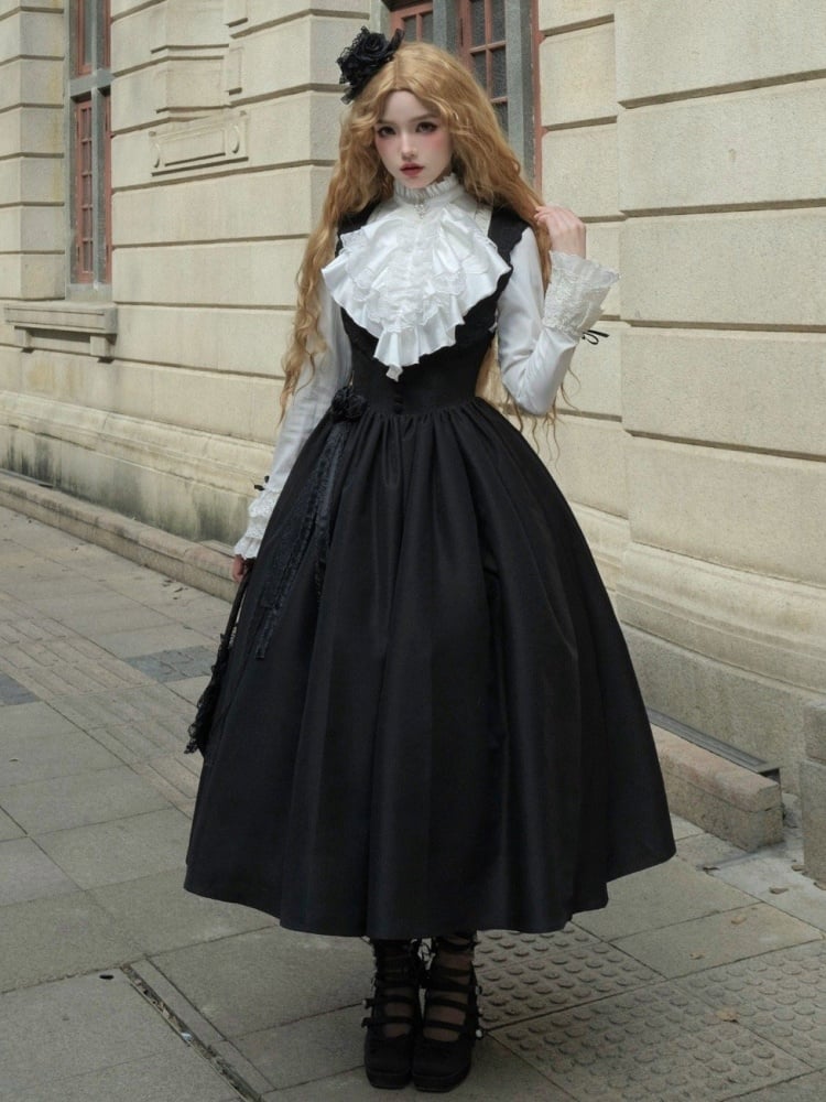 Dieser klassische Lolita-Pulloverrock mit schwarzer Rosette und gewelltem Rand unter der Brust ist unbestreitbar bezaubernd. Mit seinem zarten gewellten Rand und den Rosettendetails strahlt dieser Pulloverrock eine schöne und feminine Ausstrahlung aus. Perfekt für jedes klassische Lolita-Outfit, wird dieser Rock Ihnen sicherlich ein bezauberndes Gefühl geben.