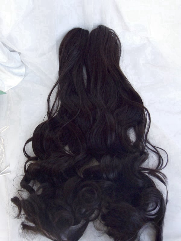 Verwandeln Sie Ihren Look mit dieser süßen schwarzen Kurzhaarperücke im Bob-Schnitt mit vollem Pony und doppelten, lockigen Pferdeschwanzklammern. Verleihen Sie Ihrer Frisur sofort Volumen und Charme. Perfekt für jeden Anlass.