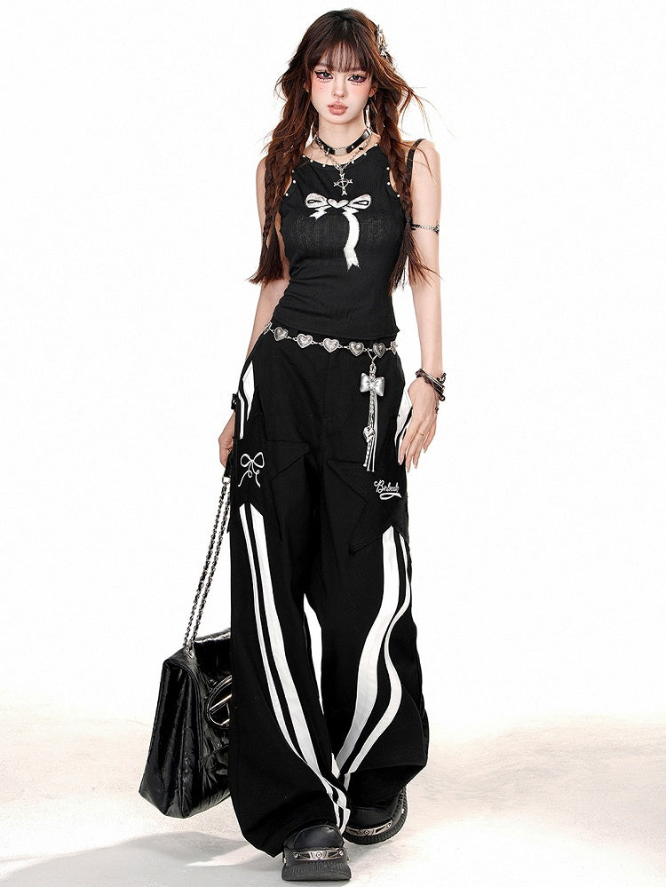 Dieses süße Tanktop besticht durch sein schwarz-weißes Design mit einer bezaubernden Schleife und einem stilvollen Ausschnittdetail. Perfekt, um Ihrer Sommergarderobe einen Hauch von Süße zu verleihen.