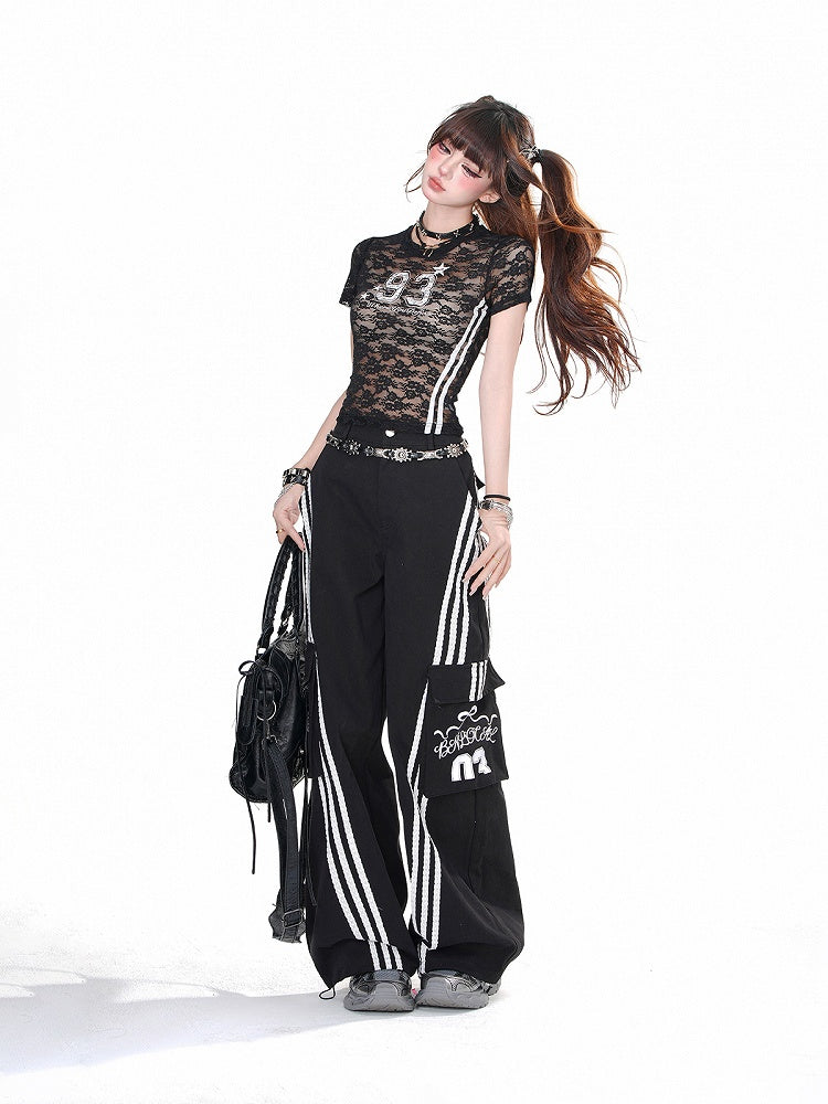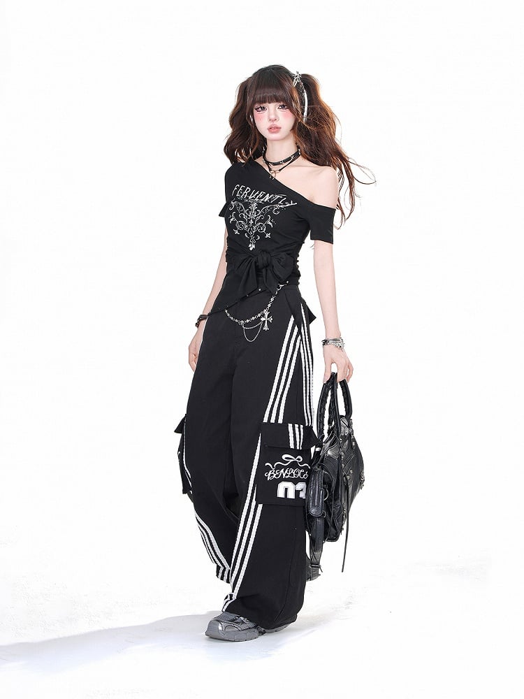 Bleiben Sie stilvoll und bequem mit unserer weiten, lockeren Hose mit schwarzen und weißen Cargotaschen. Diese Hose hat nicht nur trendige Cargotaschen, sondern bietet auch eine lockere Passform für maximalen Komfort. Perfekt für jeden lässigen Anlass und verleiht Ihrem Outfit einen Hauch von Niedlichkeit.