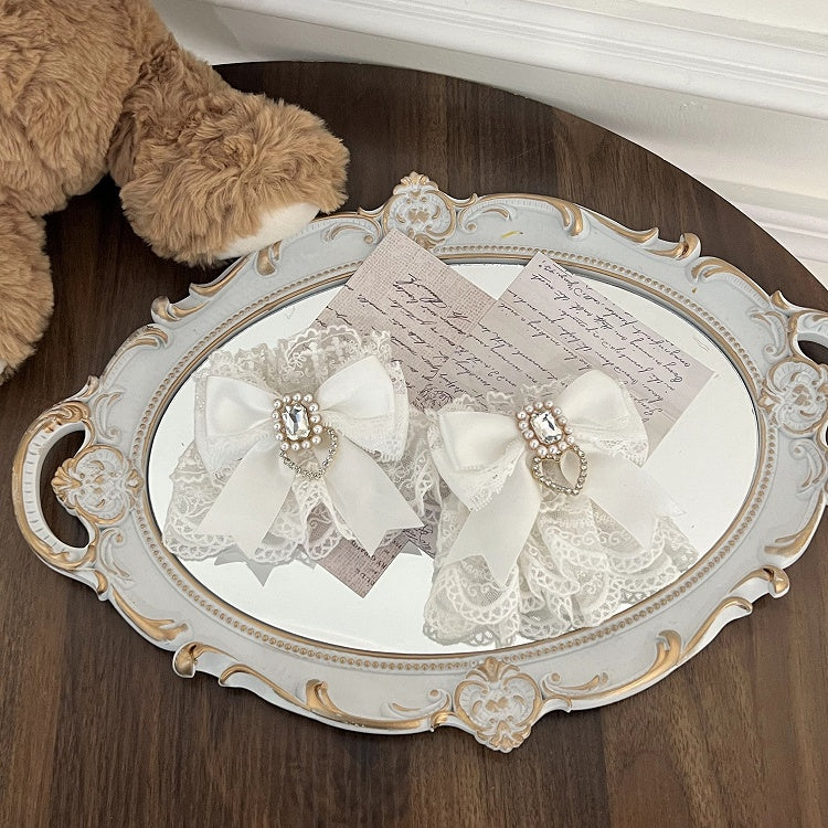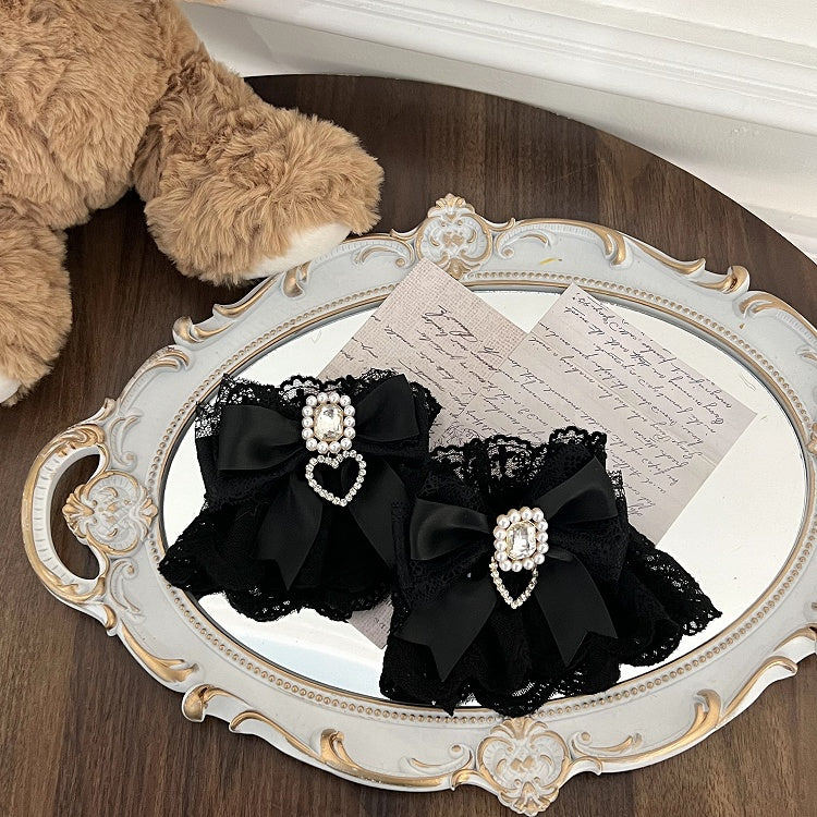 Jirai Kei Spitzen-Handgelenkmanschetten mit Schleife und Strass-Akzenten Weiß/Weiß & Rosa/Schwarz