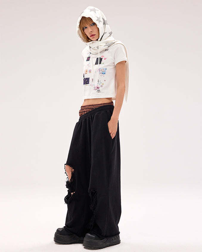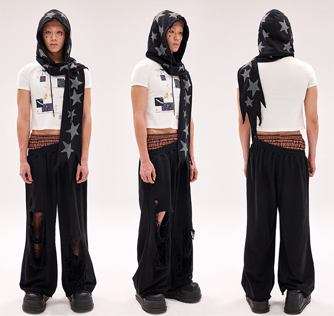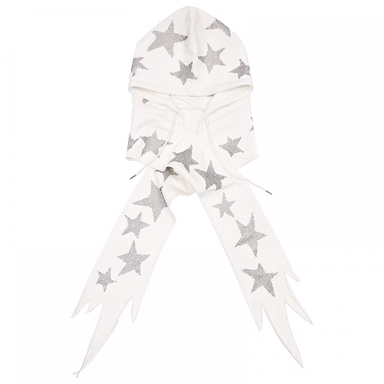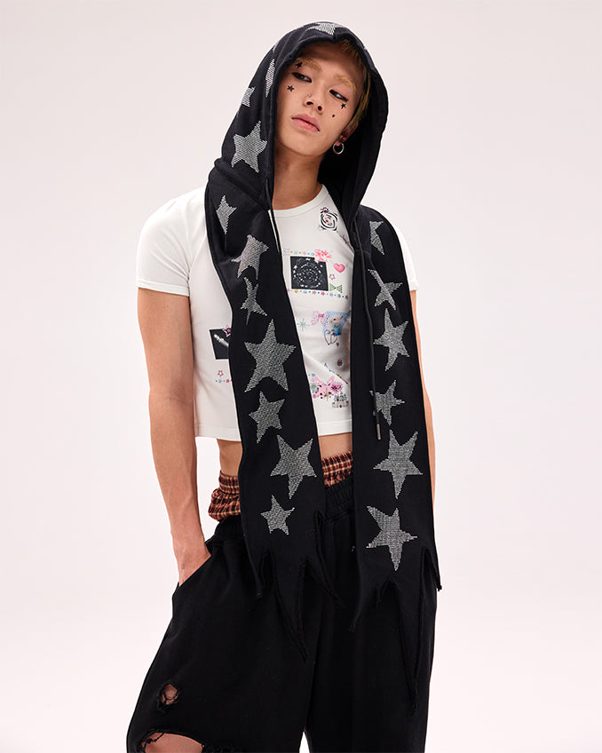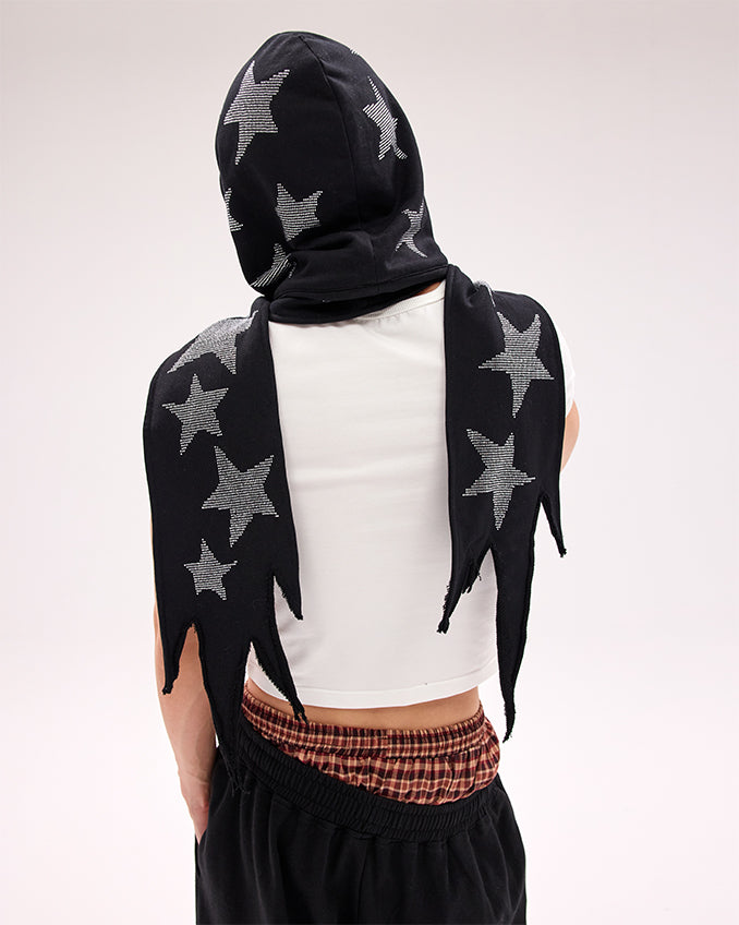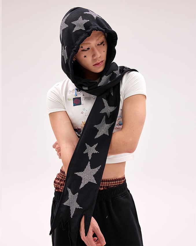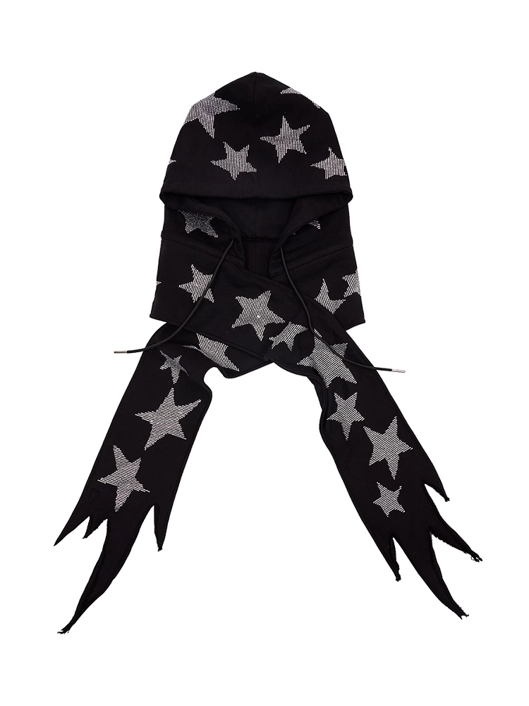 Schwarz/weiße Mütze und Schal mit Stern-Strasssteinen in einem