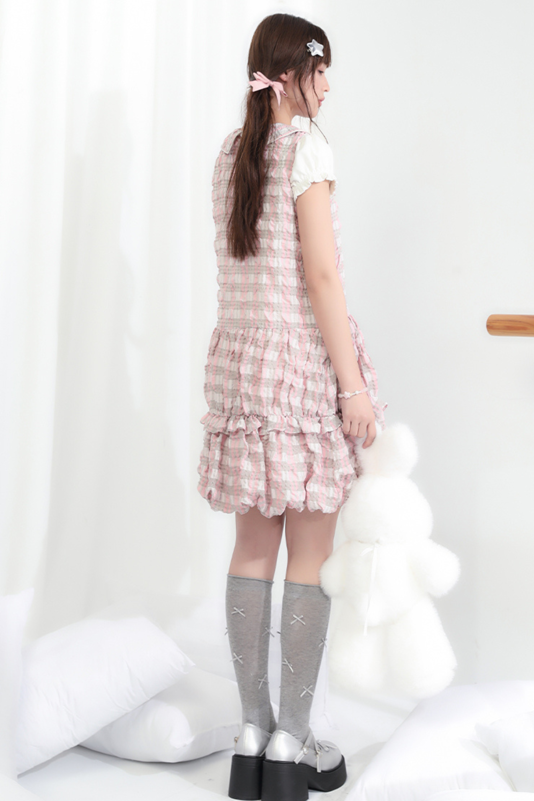 ❤Mädchenhaftes süßes ärmelloses Kleid mit Rüschen und Farbblock❤