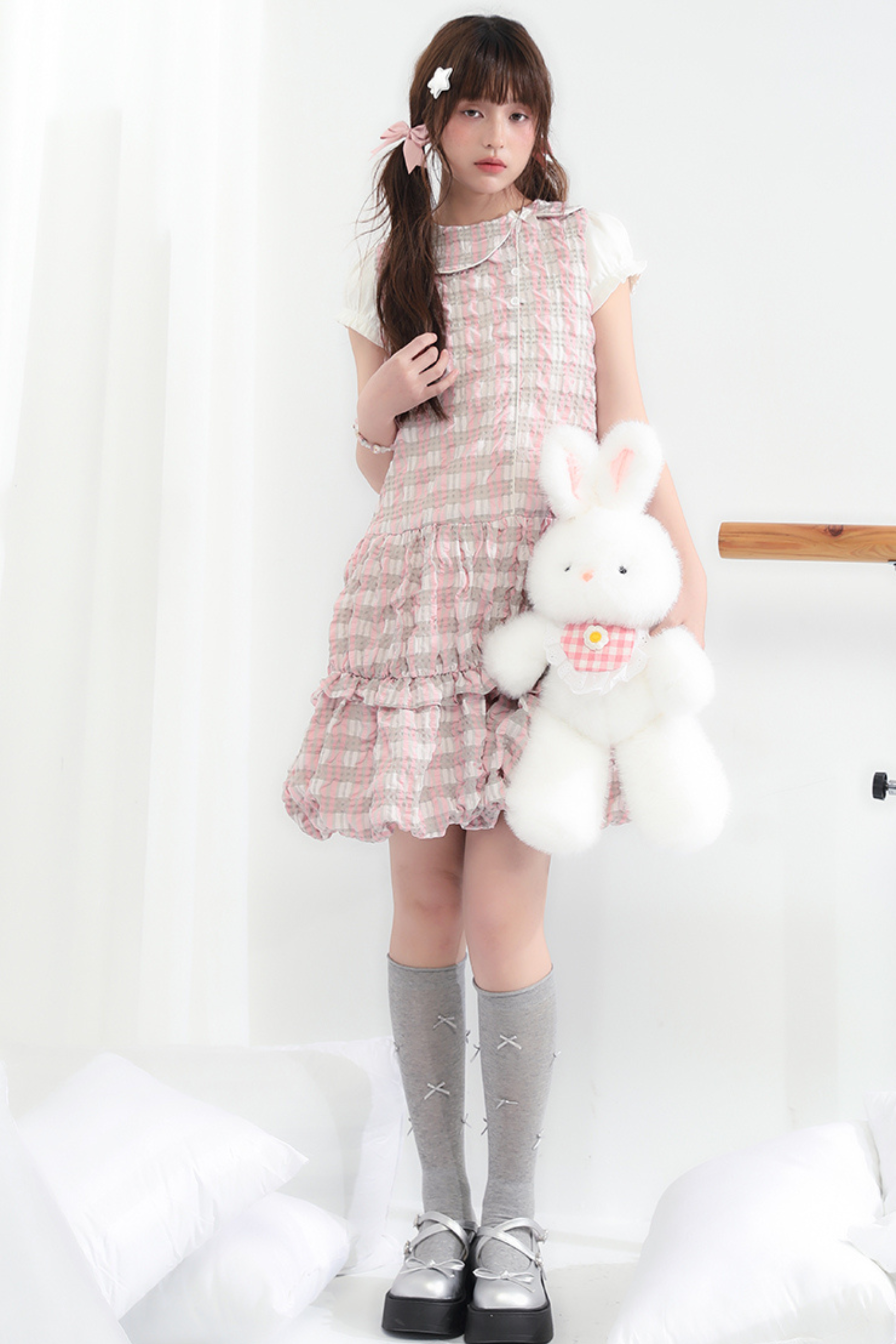 Mädchenkleid mit süßen Blockfarben und Rüschenärmeln