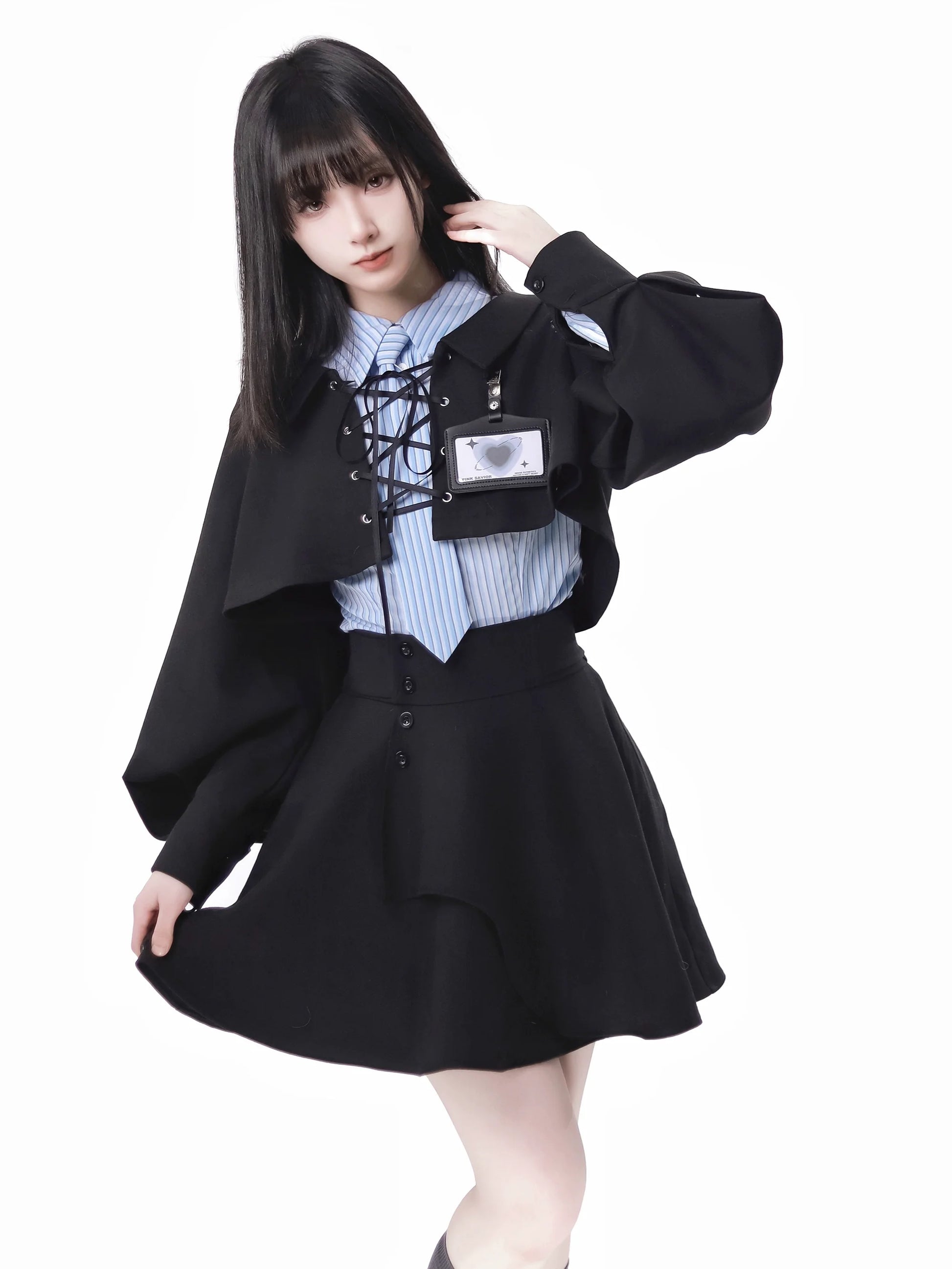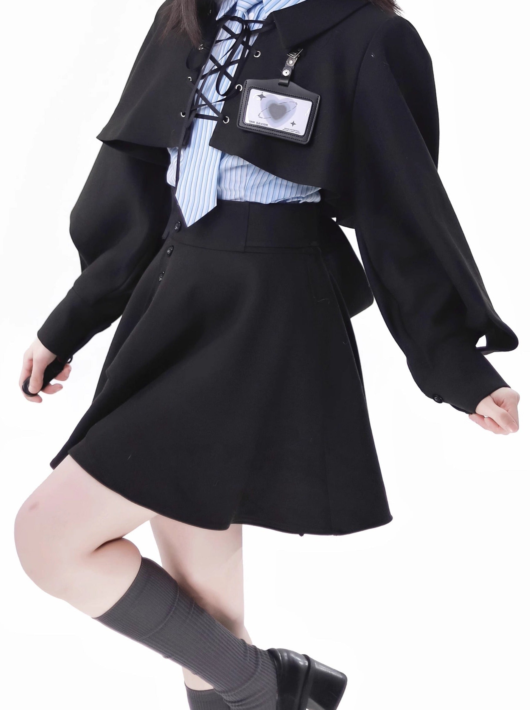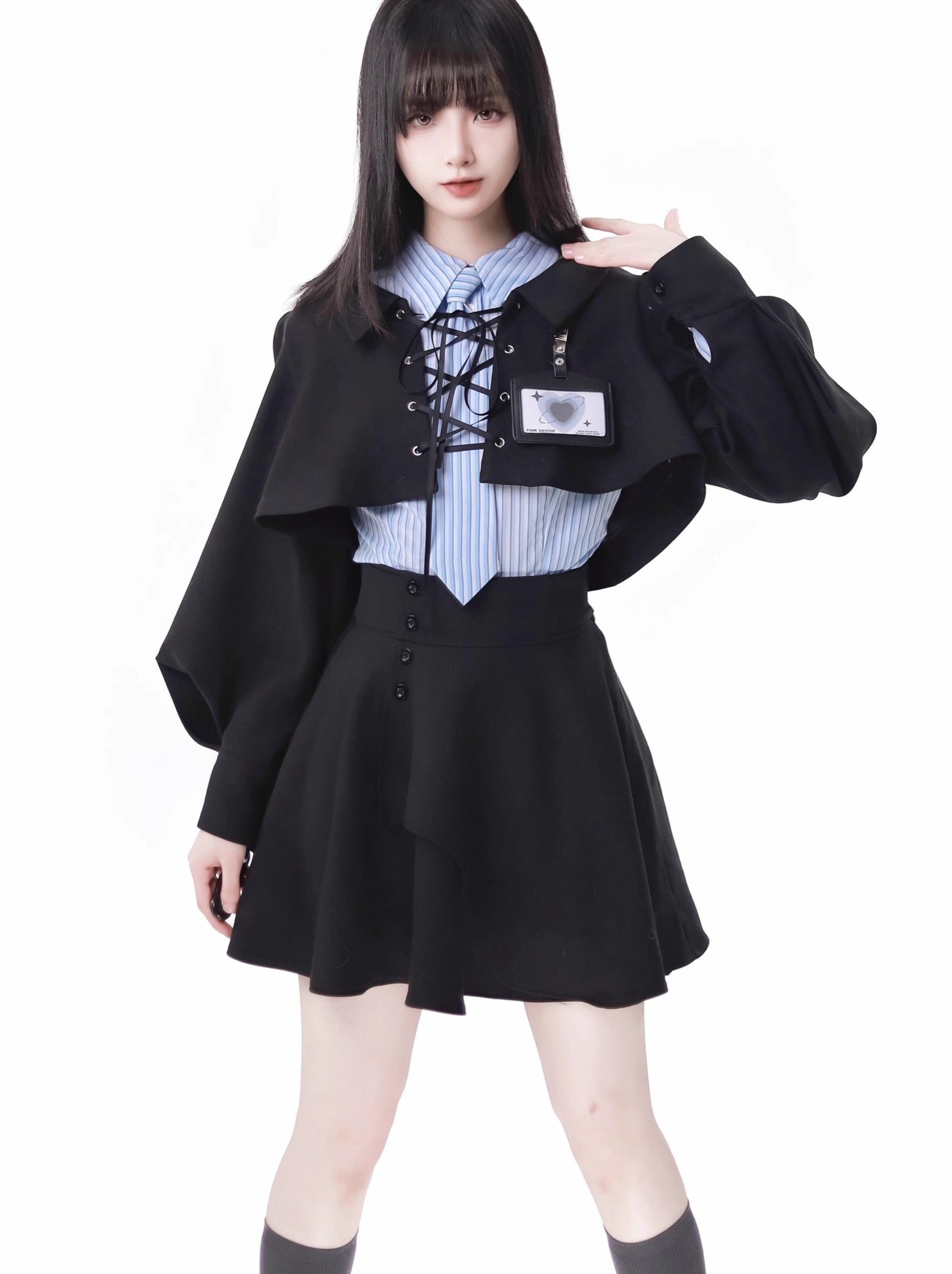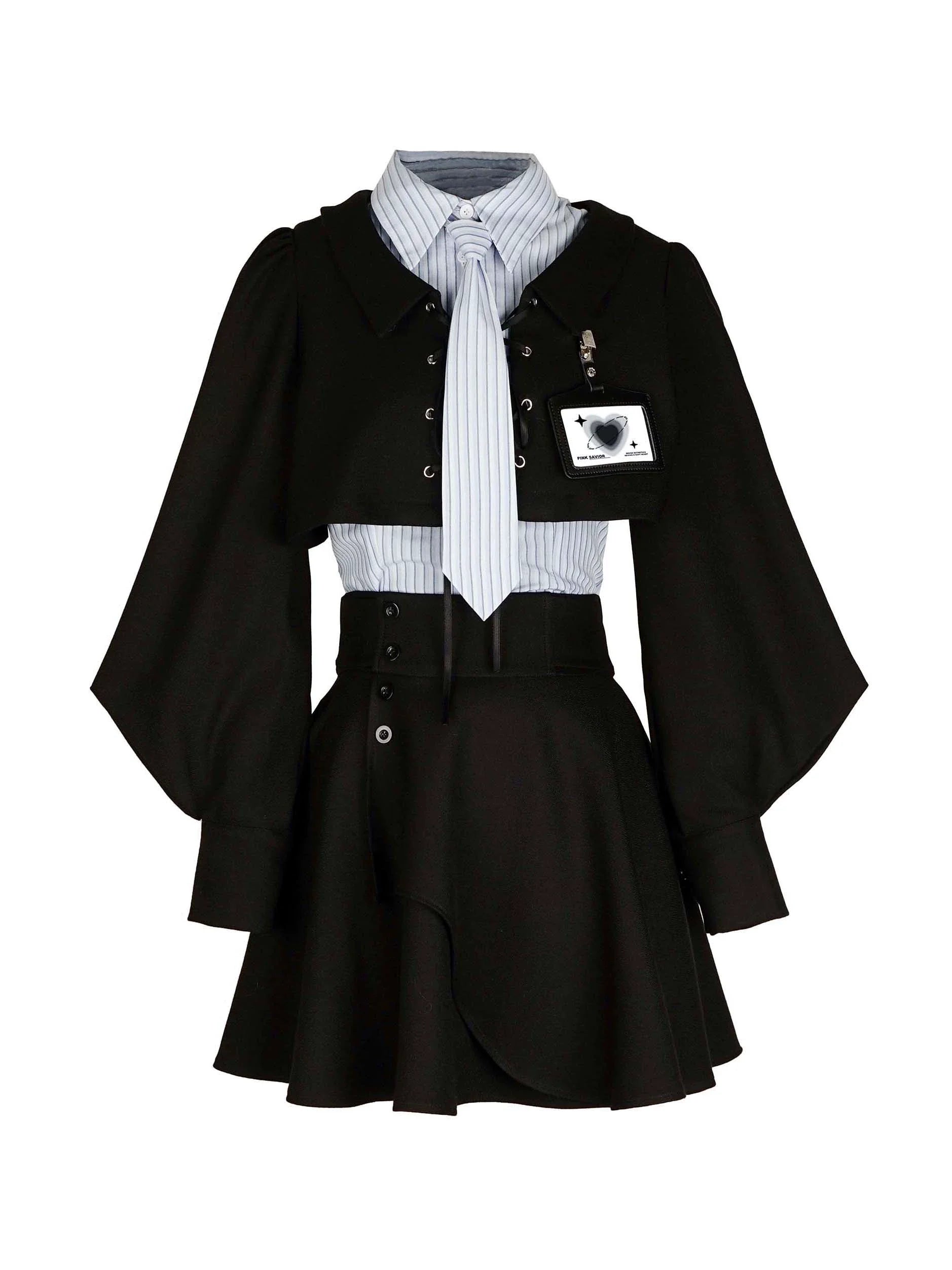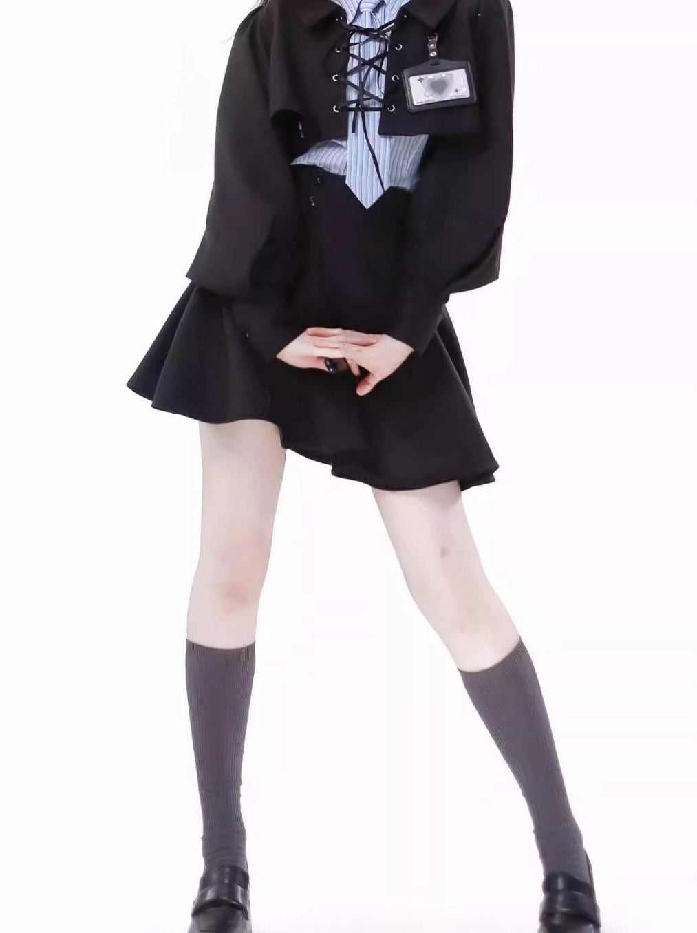 Veredeln Sie Ihren Stil mit unserem blau-schwarz gestreiften College-Anzug. Dieser charmante Anzug besticht durch sein einzigartiges Streifendesign, das einen verspielten und dennoch eleganten Charme ausstrahlt. Perfekt für jeden Anlass, wird dieser Anzug Sie mit seinem süßen und stylischen Look hervorstechen lassen. Werten Sie Ihre Garderobe noch heute auf.