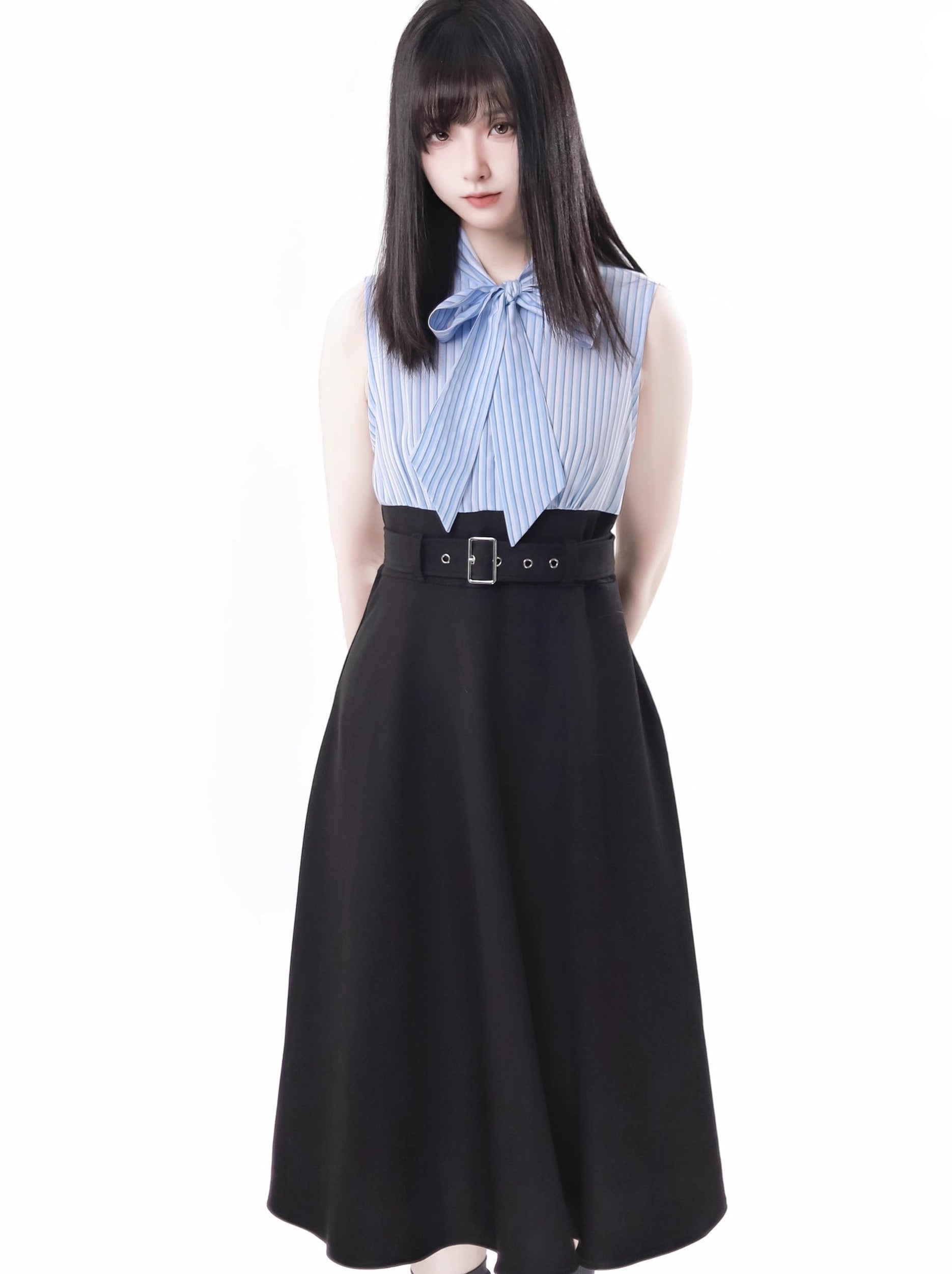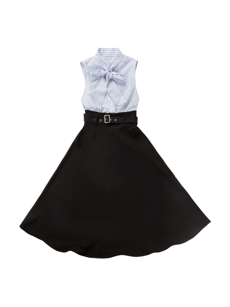 Blau-weißes Old School Lolita Fashion Kleid mit Schleife und Details, JSK-Set