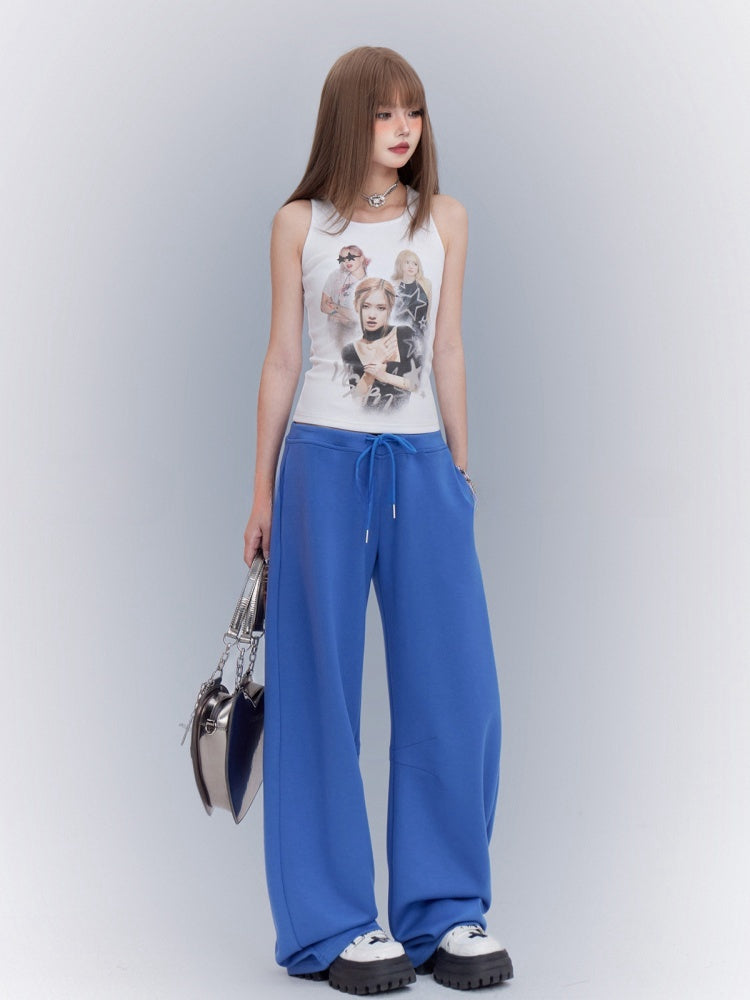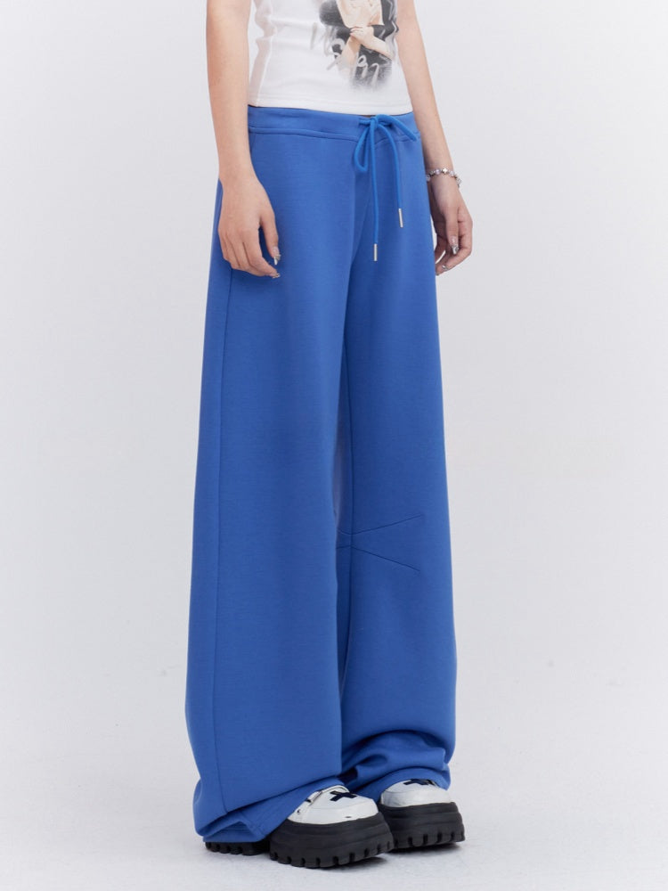 Blaue, lockere Jogginghose mit geradem Bein und Kordelzug in der Taille