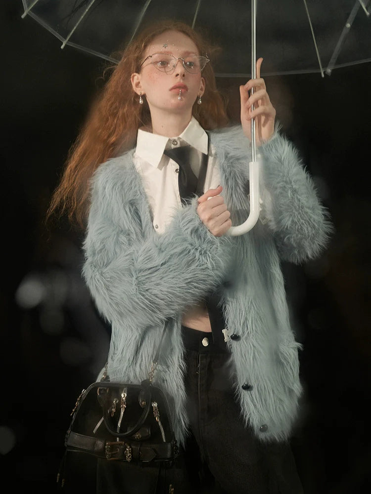 Diese bezaubernde Strickjacke mit ihrer weichen, zotteligen blauen Textur und dem stilvollen Grau ist die perfekte Ergänzung für Ihre Garderobe. Fühlen Sie sich kuschelig und süß in diesem Must-have, das Sie warm hält und stilvoll aussehen lässt. Genießen Sie die Niedlichkeit und fallen Sie mit dieser einzigartigen Strickjacke auf.