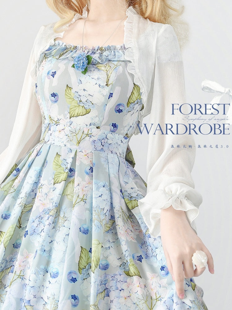 Blau-weißes Old School Lolita Fashion Kleid mit Schleife und Details, JSK-Set