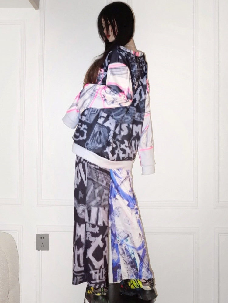 Graues Y2K-Sweatshirt mit Knochen- und großem Schleifen-Print