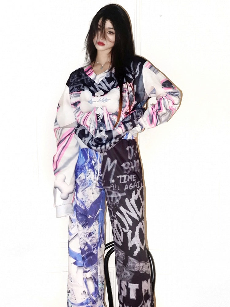 Knochen und Sweatshirt Y2K Print Große graue Schleife