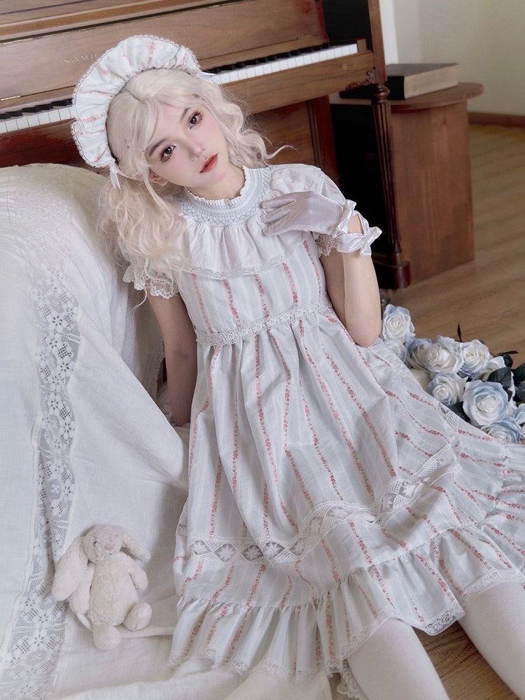 Rosa und weißes Old School Lolita Fashion Kleid Bowknot Detais Lolita JSK Set