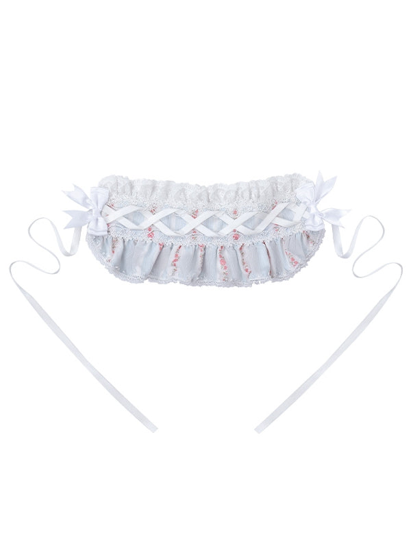 Blau-weißes Old School Lolita Fashion Kleid mit Schleife und Details, JSK-Set