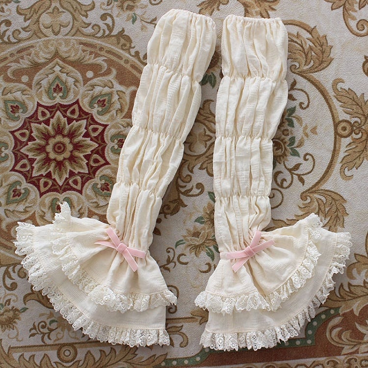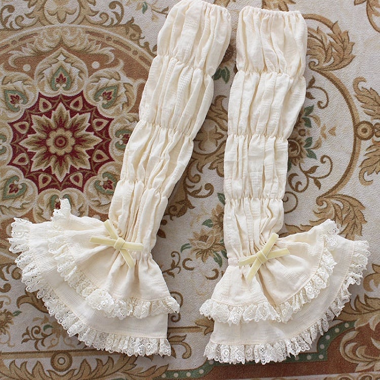 Milchweiße Lagenärmel mit Spitzenbesatz und Schleifenakzenten. Erhältlich in 3 Farben.