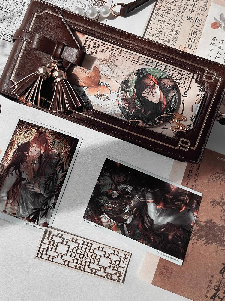 Schleife Braun Cheongsam Muster Blumentasche PU Akzent Ita Stil mit Fransen