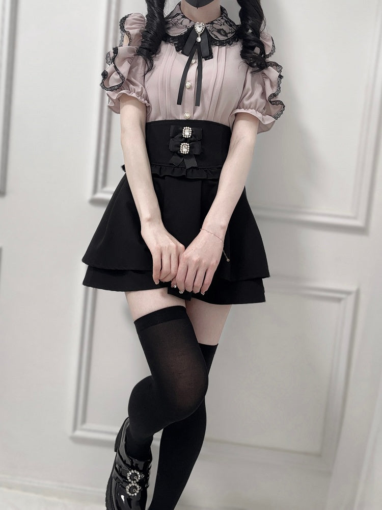Schleife Dusty Collar Peter Bluse mit Spitze Pink Pan Cutout Trim Schulter Jirai Tie Kei