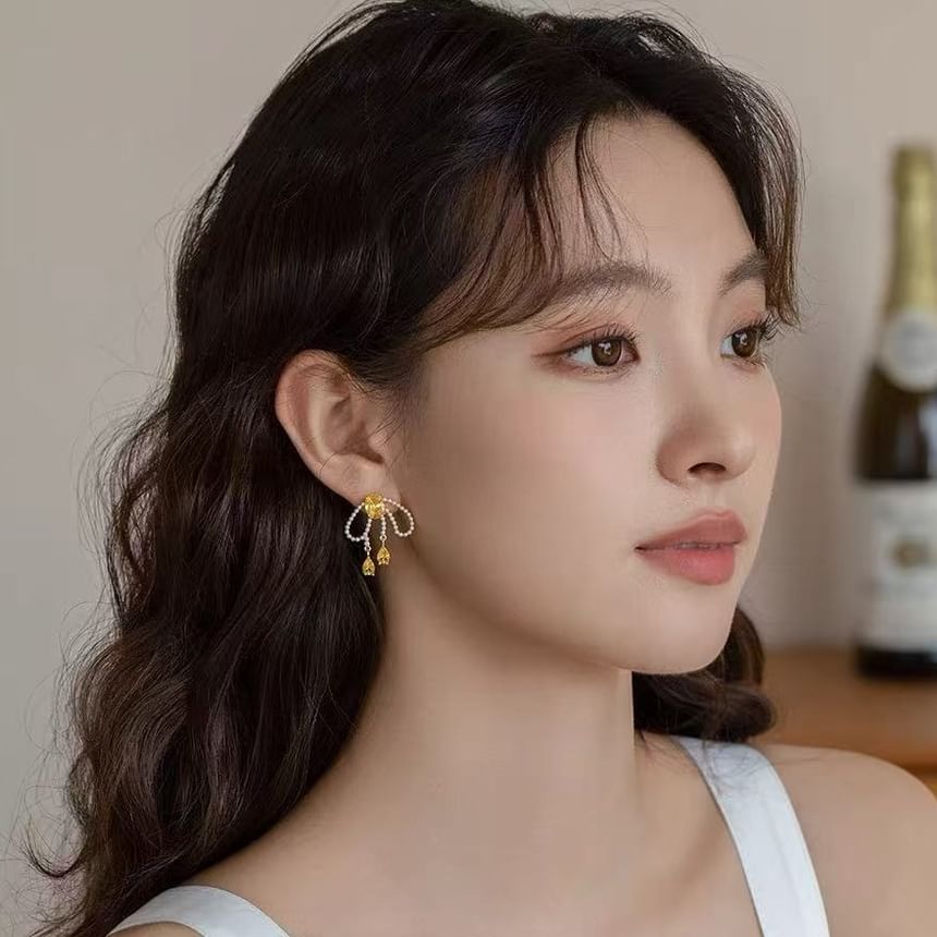 Perlen-Ohrstecker mit Schleife