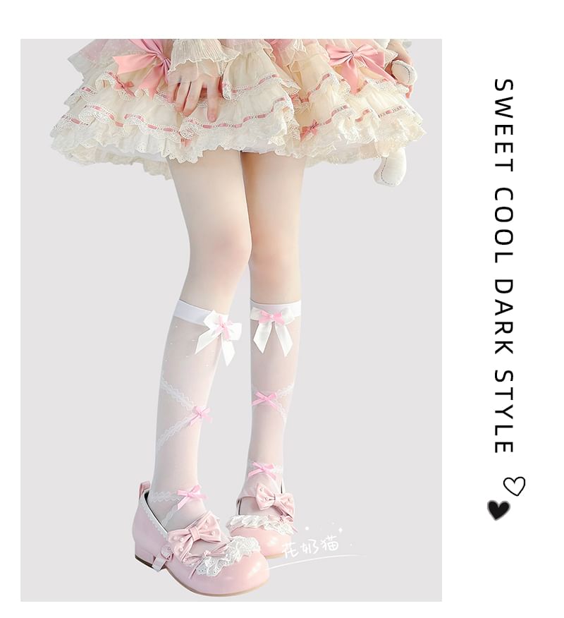 Transparente Kniestrümpfe mit Schleife