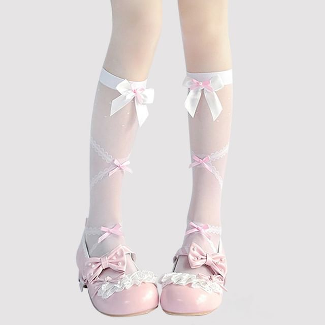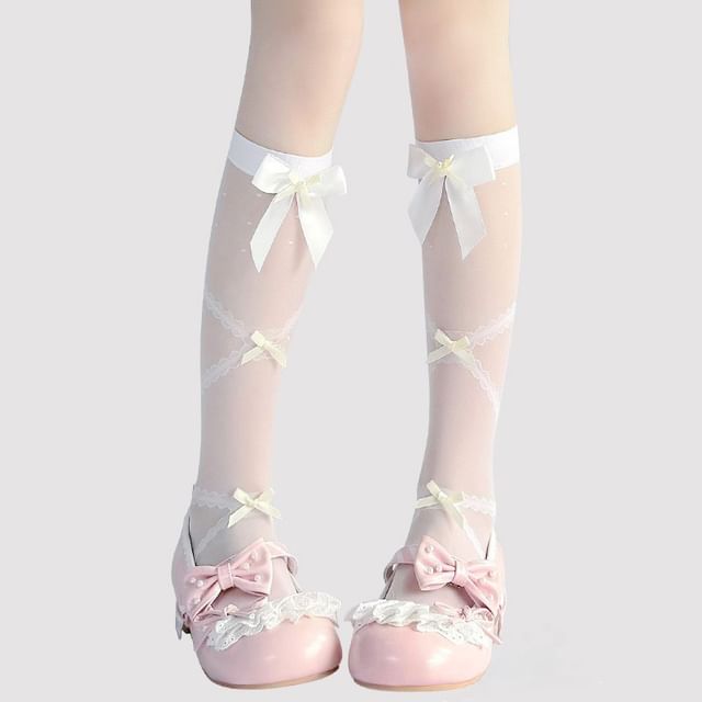 Hohe, transparente Kniestrümpfe mit Schleife