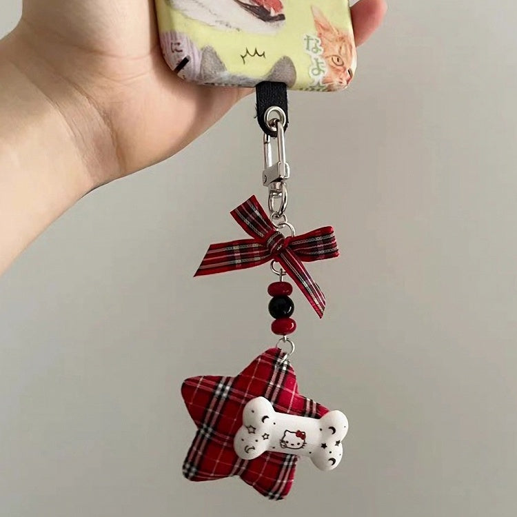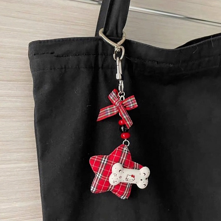 Schleife Halskette Y2K Rotes Kreuz Burgund Herz Schlüsselanhänger/Rot