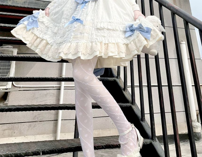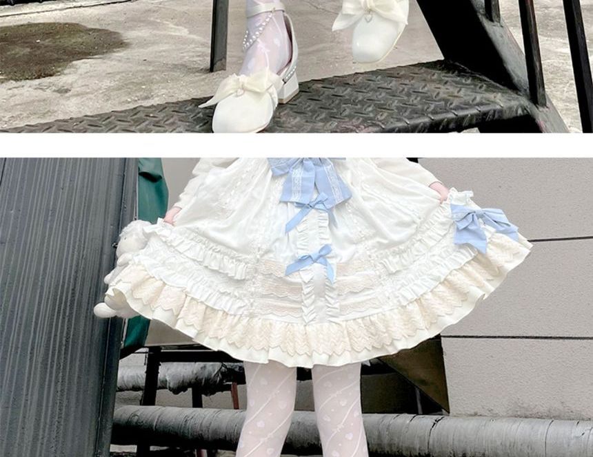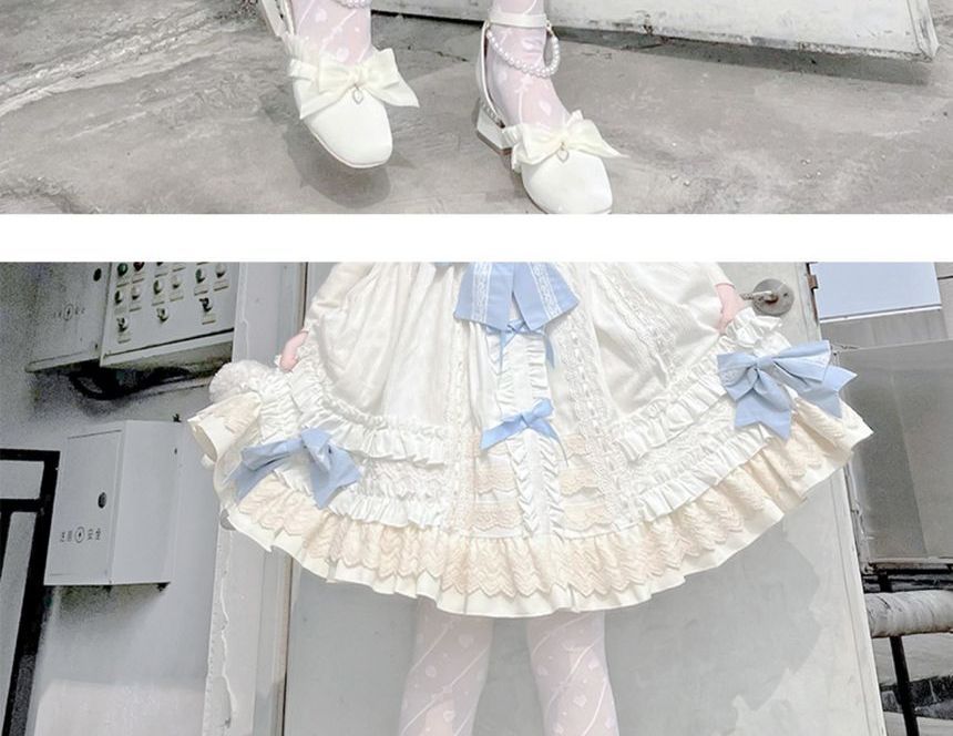 Blau-weißes Old School Lolita Fashion Kleid mit Schleife und Details, JSK-Set