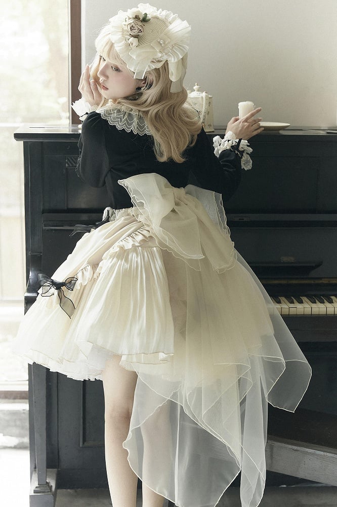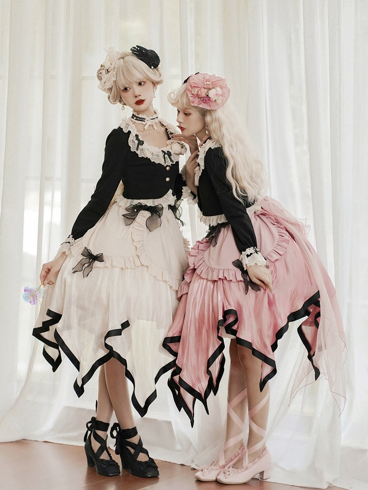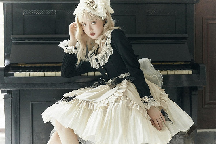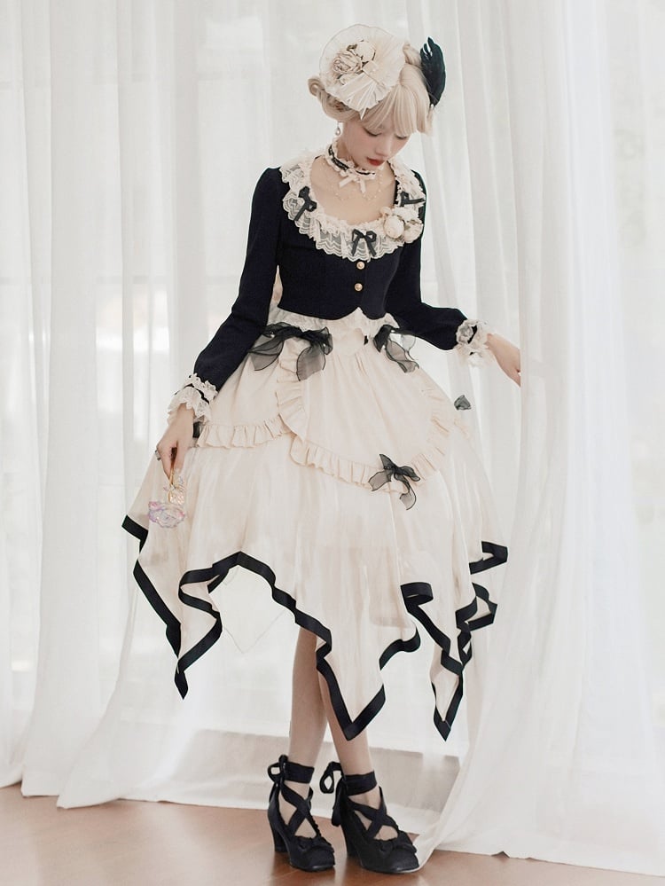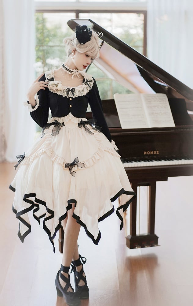 Schwarz-weißes Old School Lolita Fashion Kleid Bowknot Lolita JSK Set