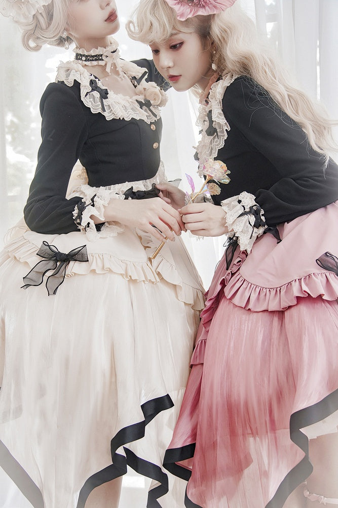 Rosa und weißes Old School Lolita Fashion Kleid Bowknot Detais Lolita JSK Set