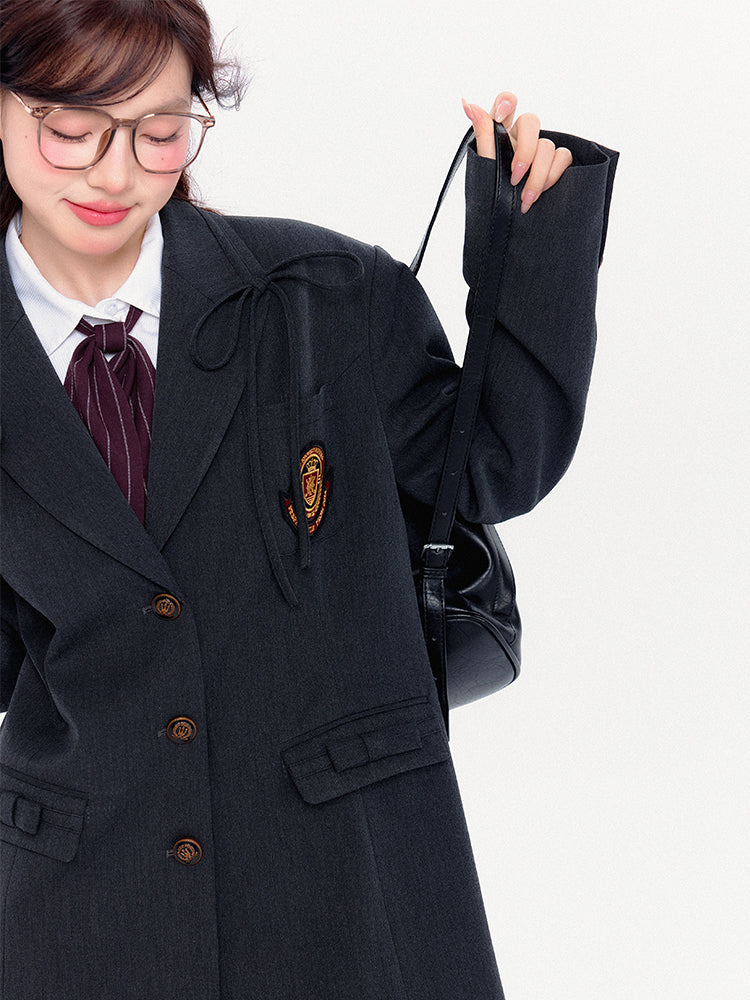 Dunkelgrauer Preppy-Blazer mit Schleifendetails