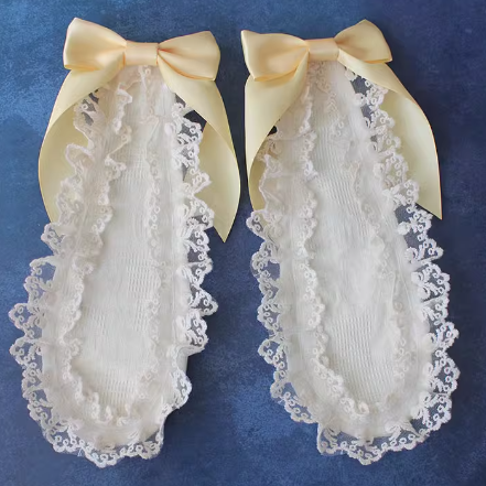 Diese süßen Haarspangen verfügen über einen zarten Spitzenbesatz und bezaubernde Schleifendetails in Form von Hasenohren. Verleihen Sie Ihrer Frisur mit diesen bezaubernden Haaraccessoires einen Hauch von Verspieltheit und Charme.