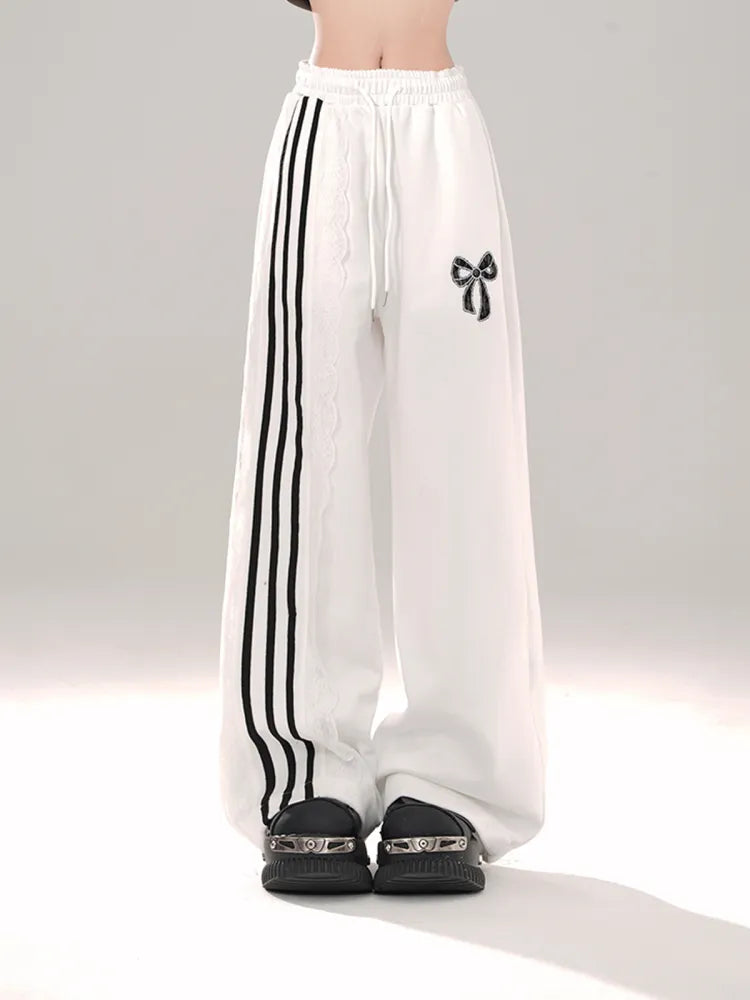 Bowknot Hose Weites Bein Schwarz/Weiß Blokettecore Print Schnitt