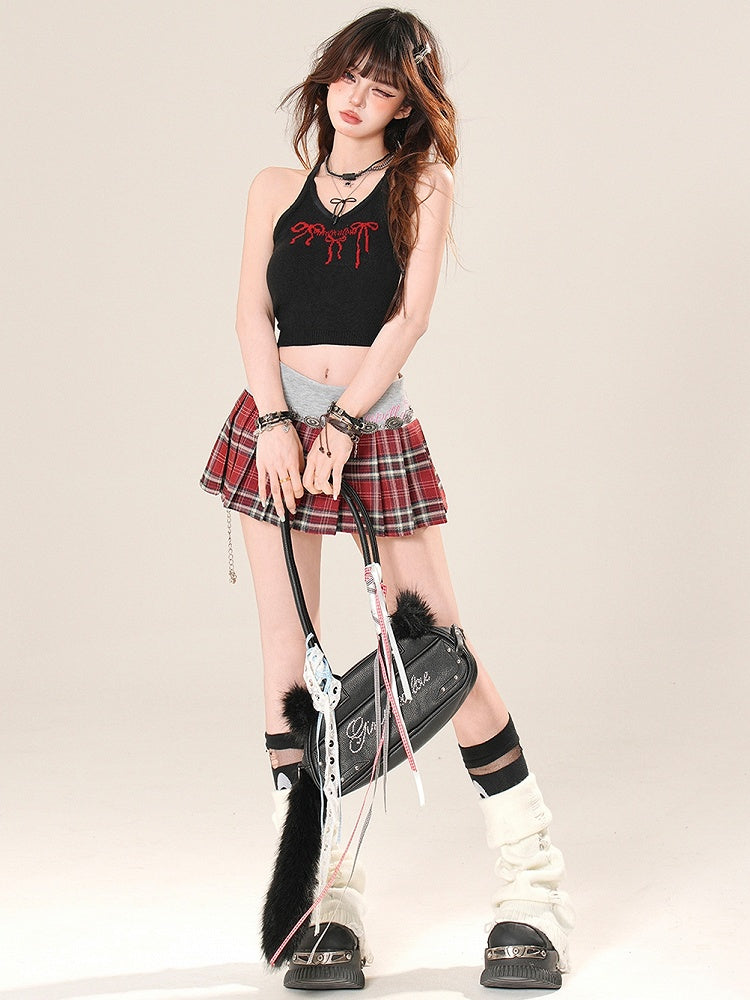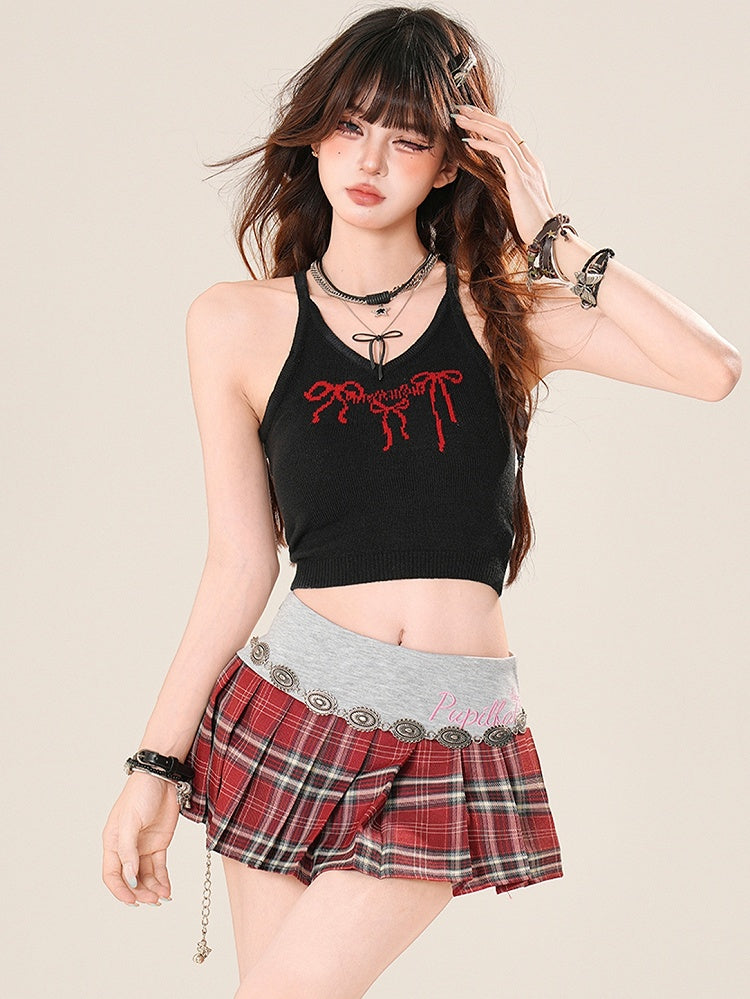 Schwarz-rotes Cami-Top mit Bittersweet Glamorous-Schleifenmuster