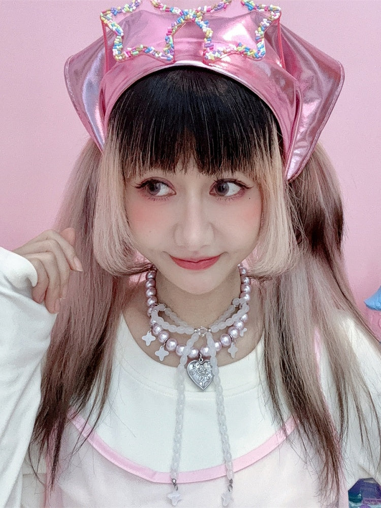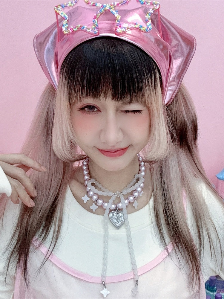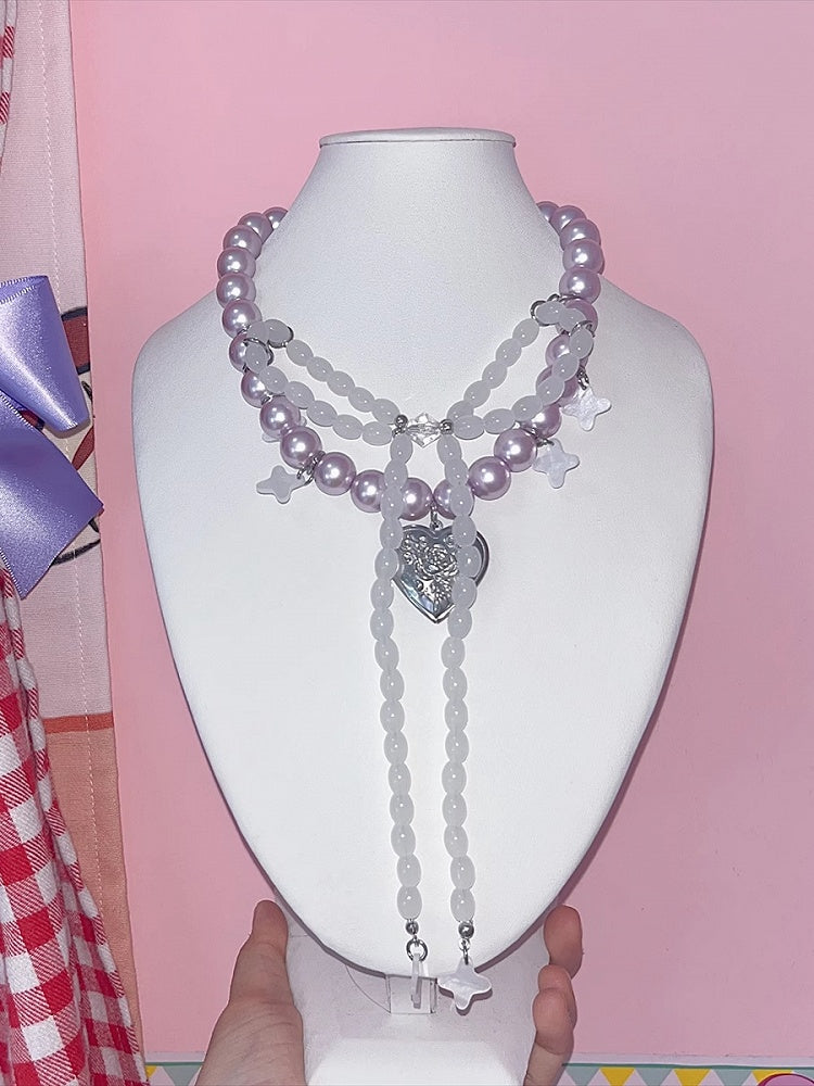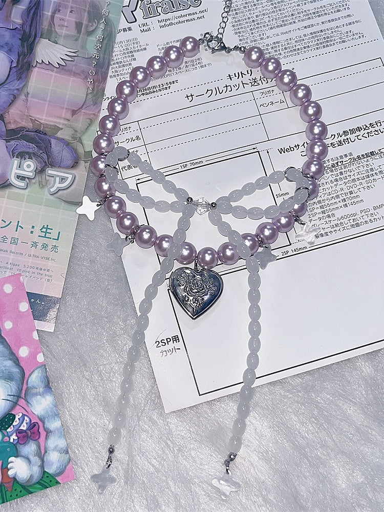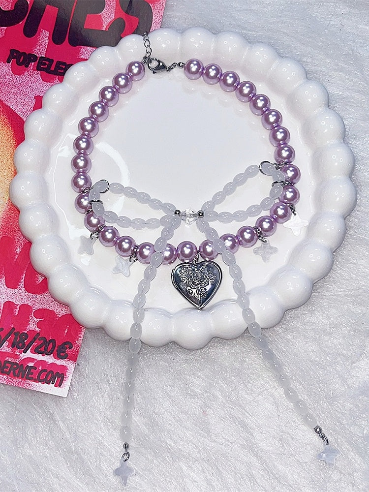 Bowknot Lila Design Perlen Y2K Anhänger Herz Halskette