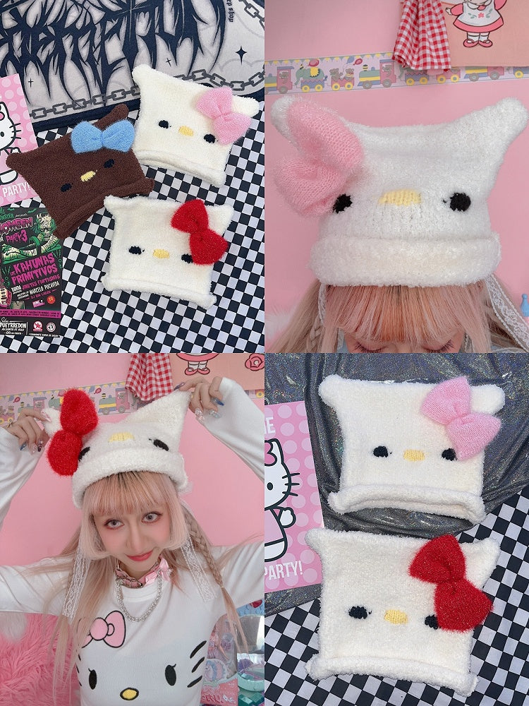Bowknot Y2K Gestrickte Kätzchenmütze