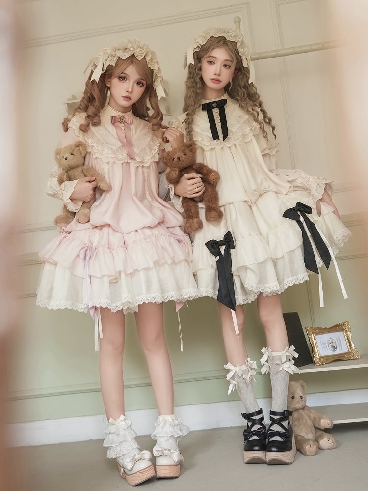 Rosa und weißes Old School Lolita Fashion Kleid Bowknot Detais Lolita JSK Set