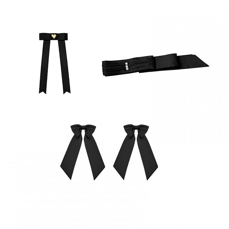 Broschen + Schleife / Schwarzer Taillengürtel in Rosa