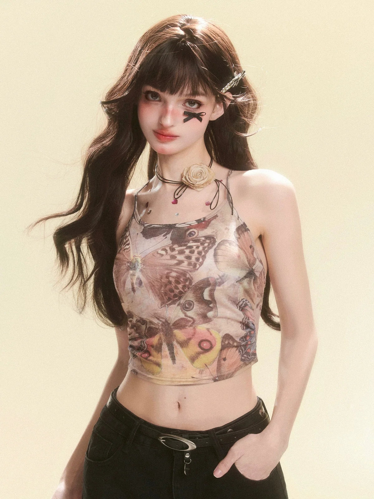 Dieses bezaubernde braune Top-Camisole aus transparentem Stoff ist die perfekte Ergänzung für Ihre Garderobe. Das leichte Design sorgt für einen bequemen Sitz, während die dezente Eleganz und Eleganz des Tops Ihren Stil unterstreicht. Ein Must-have für alle modebewussten Frauen.