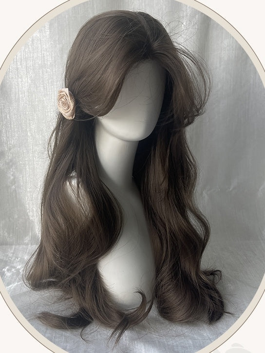 Braune, hüftlange, gewellte Perücke mit Vorhangpony